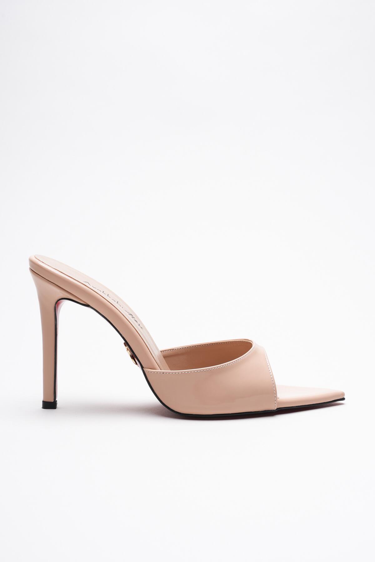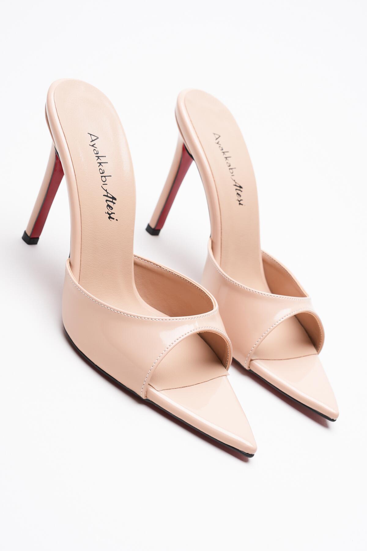 Kadın Sivri Burun İnce Topuklu Terlik Sona Nude Rugan