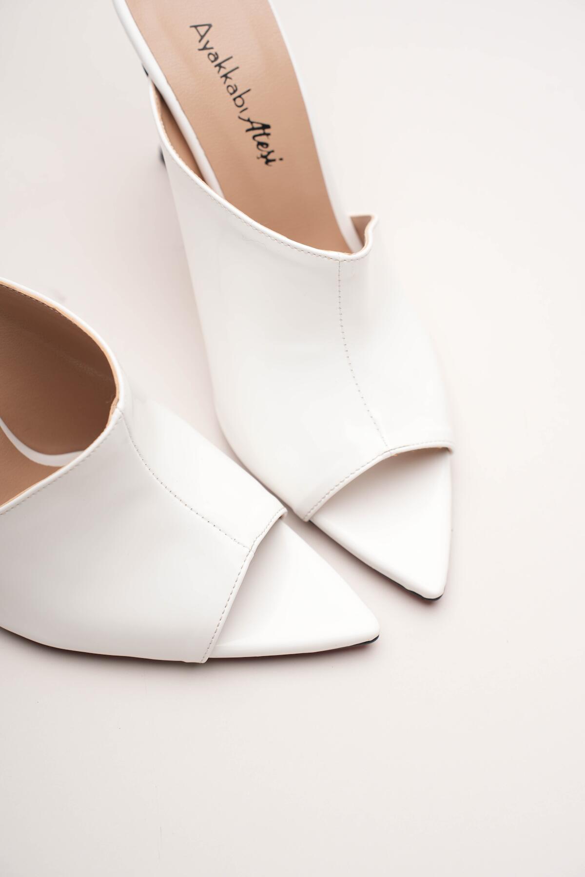 Kadın Tasarım İnce Topuklu Terlik Carolina Beyaz Rugan