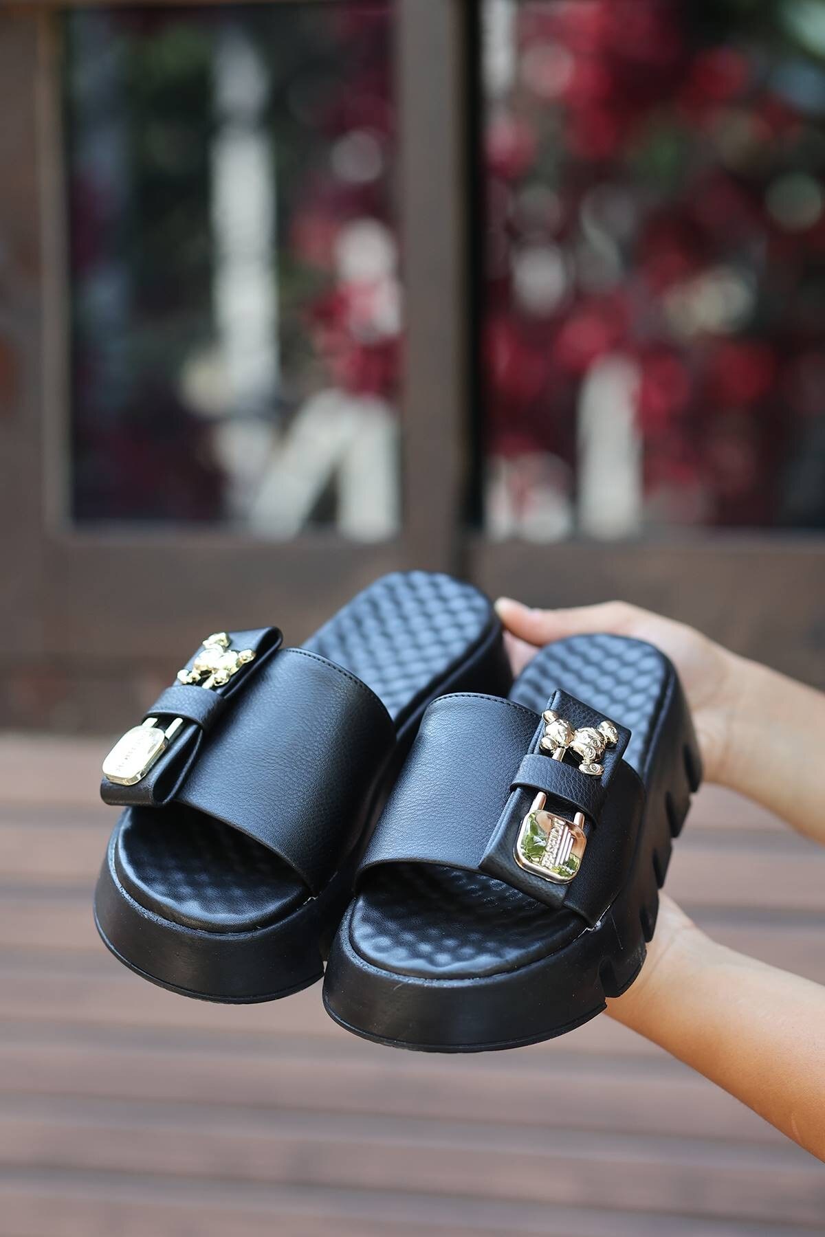 Kadın Yüksek Taban Tokalı Terlik Ciya Siyah