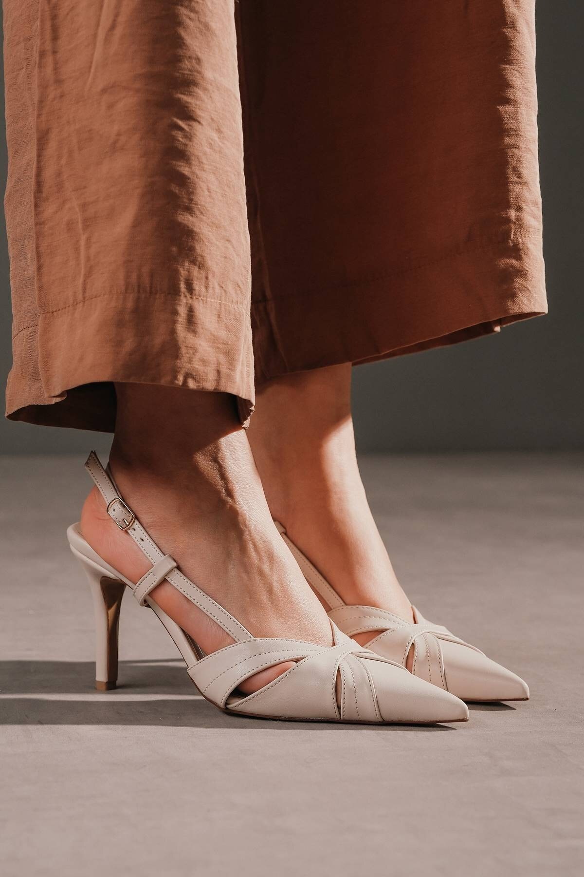 Bej Kot Tasarım Tokalı Kadın Topuklu Ayakkabı Niola