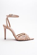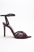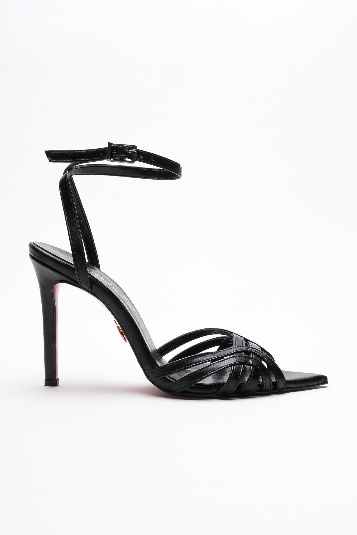 Kadın Açık Kafes Burun Tasarım İnce Topuklu Ayakkabı Prona Siyah Cilt