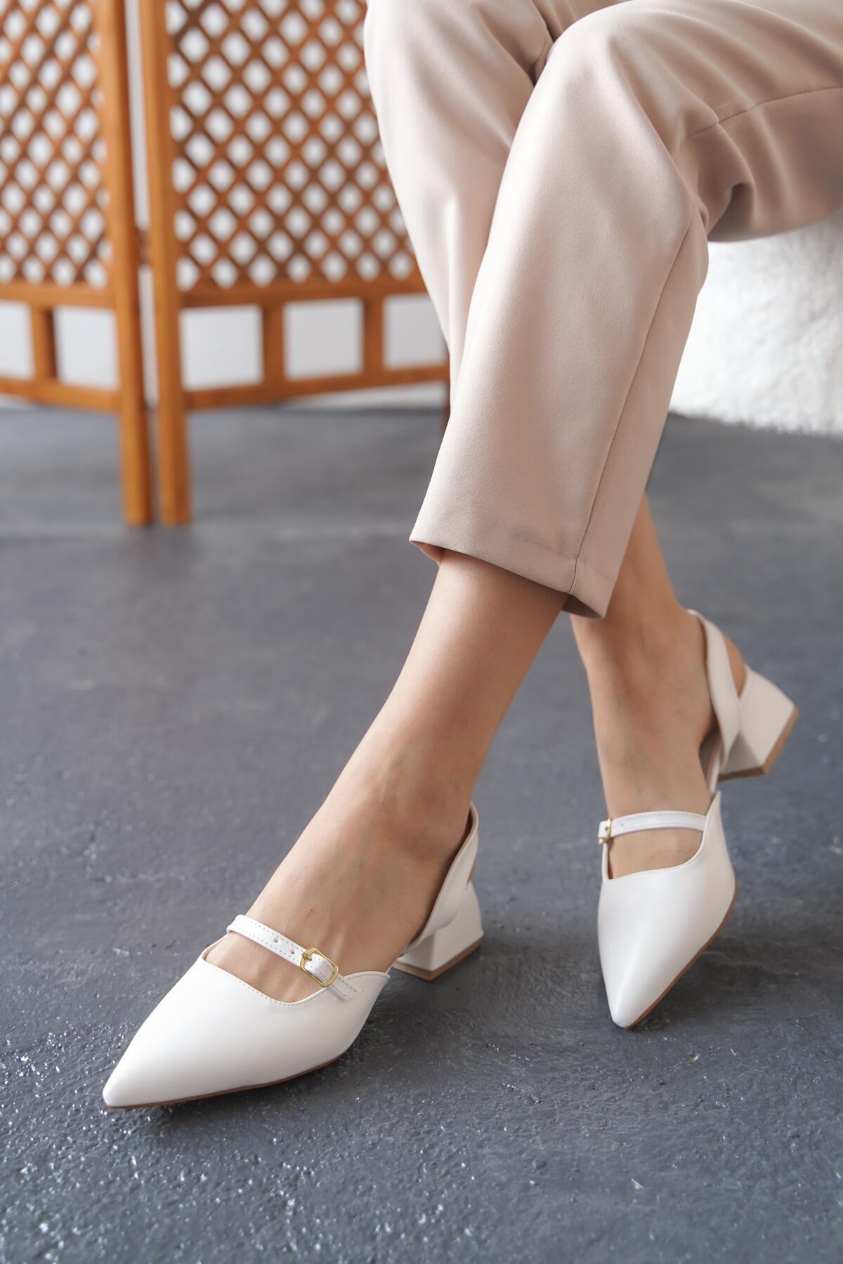 Kadın Çift Bant Tokalı Tasarım Topuklu Ayakkabı Conna