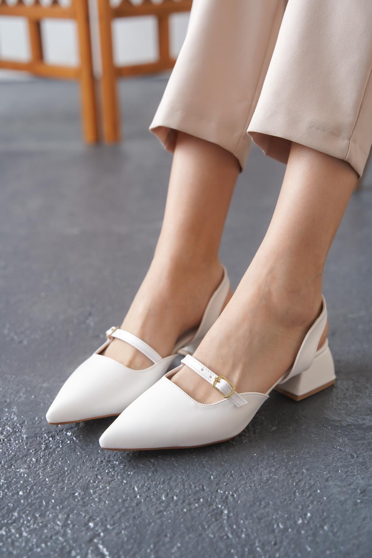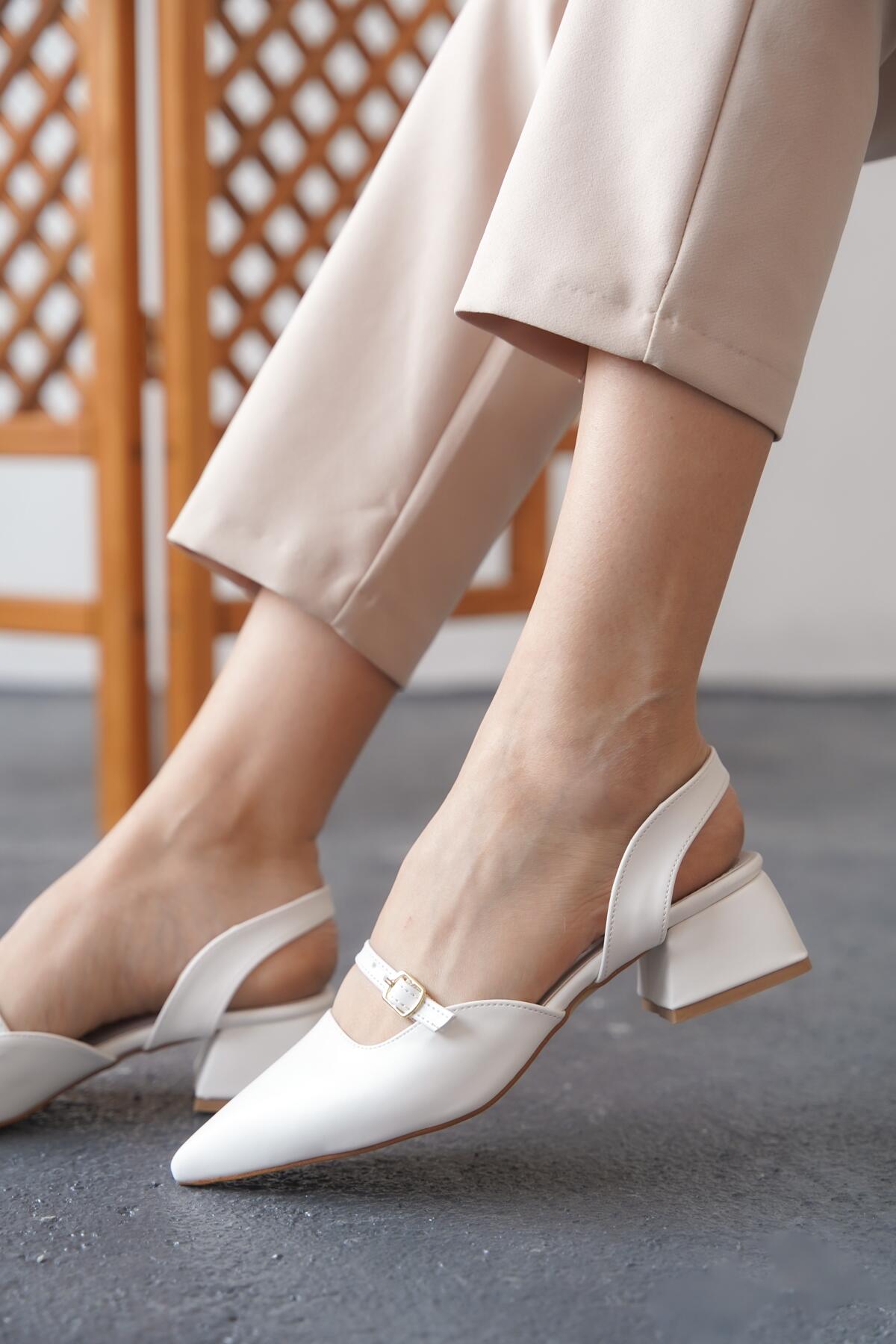Kadın Arka Açık Tek Baret Kısa Topuklu Ayakkabı Alfa Beyaz Cilt