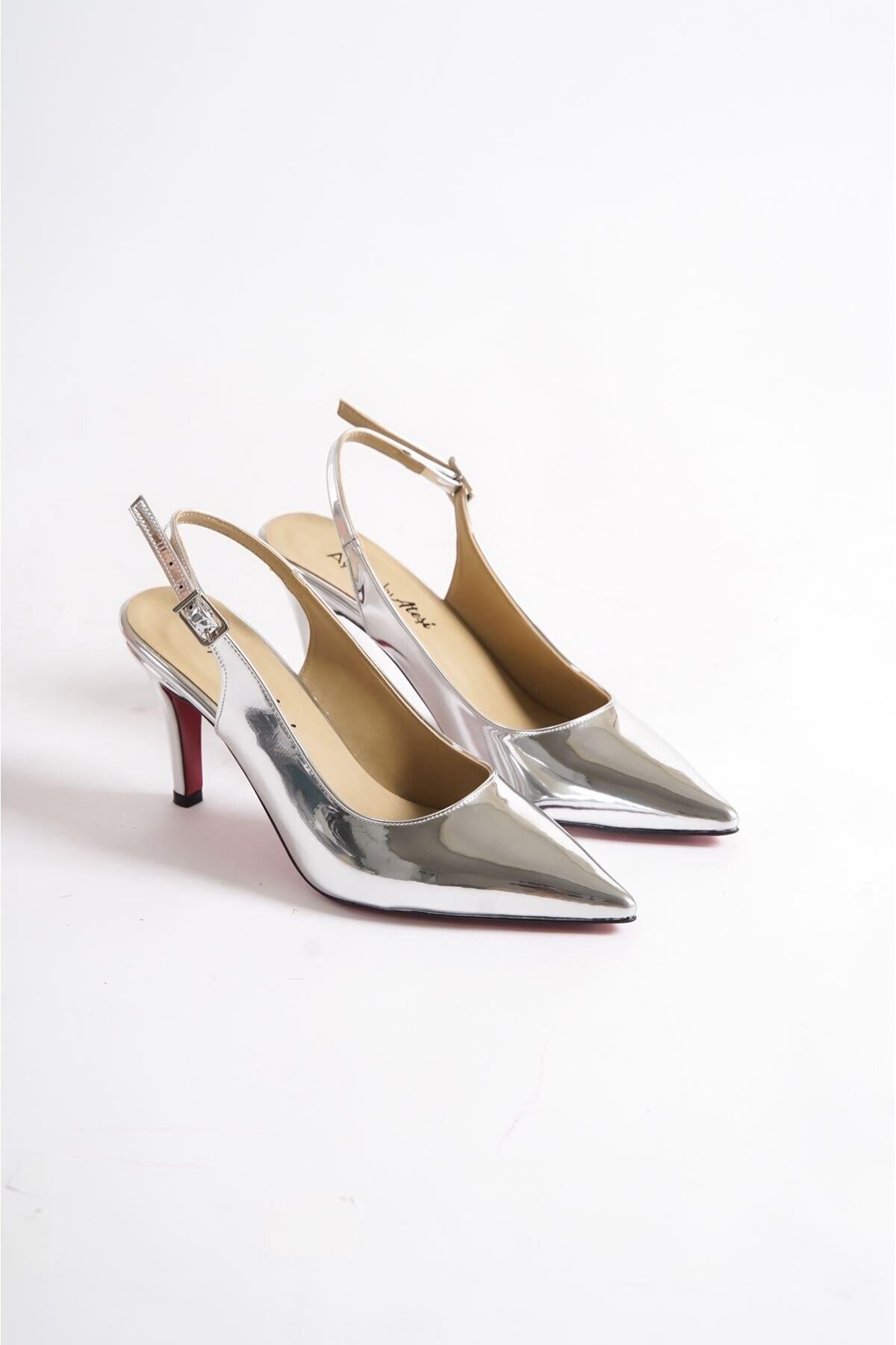 Kadın Arkası Açık Kısa Topuklu Ayakkabı Nelly Gümüş Ayna