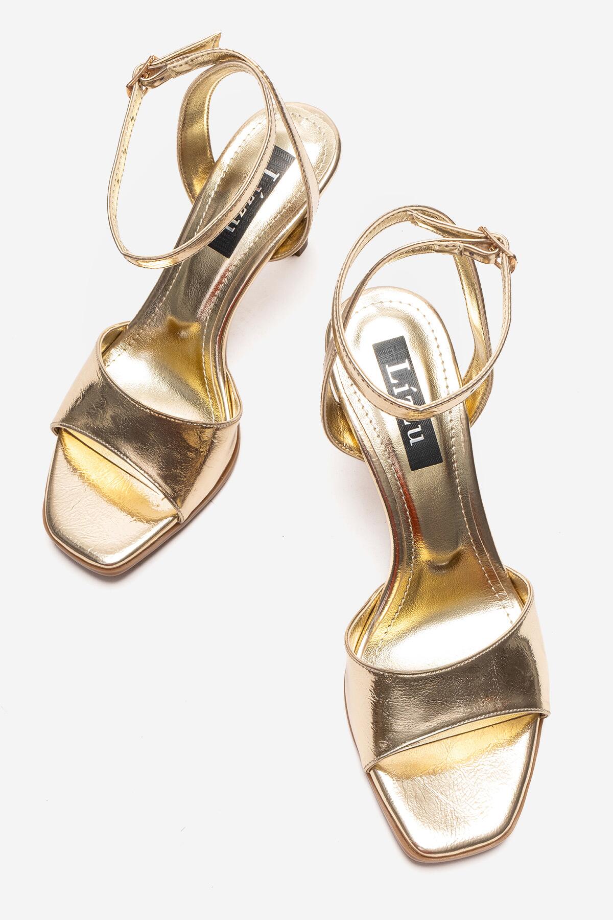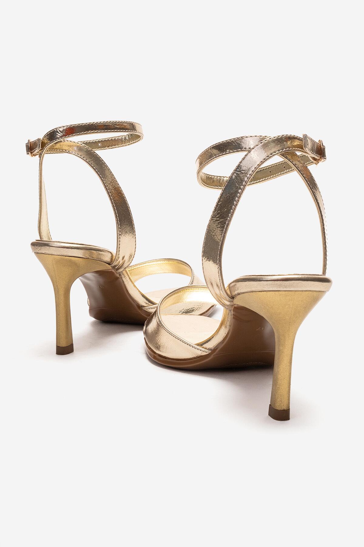 Kadın Burun Açık Bilekten Baretli Topuklu Ayakkabı Paris Altın