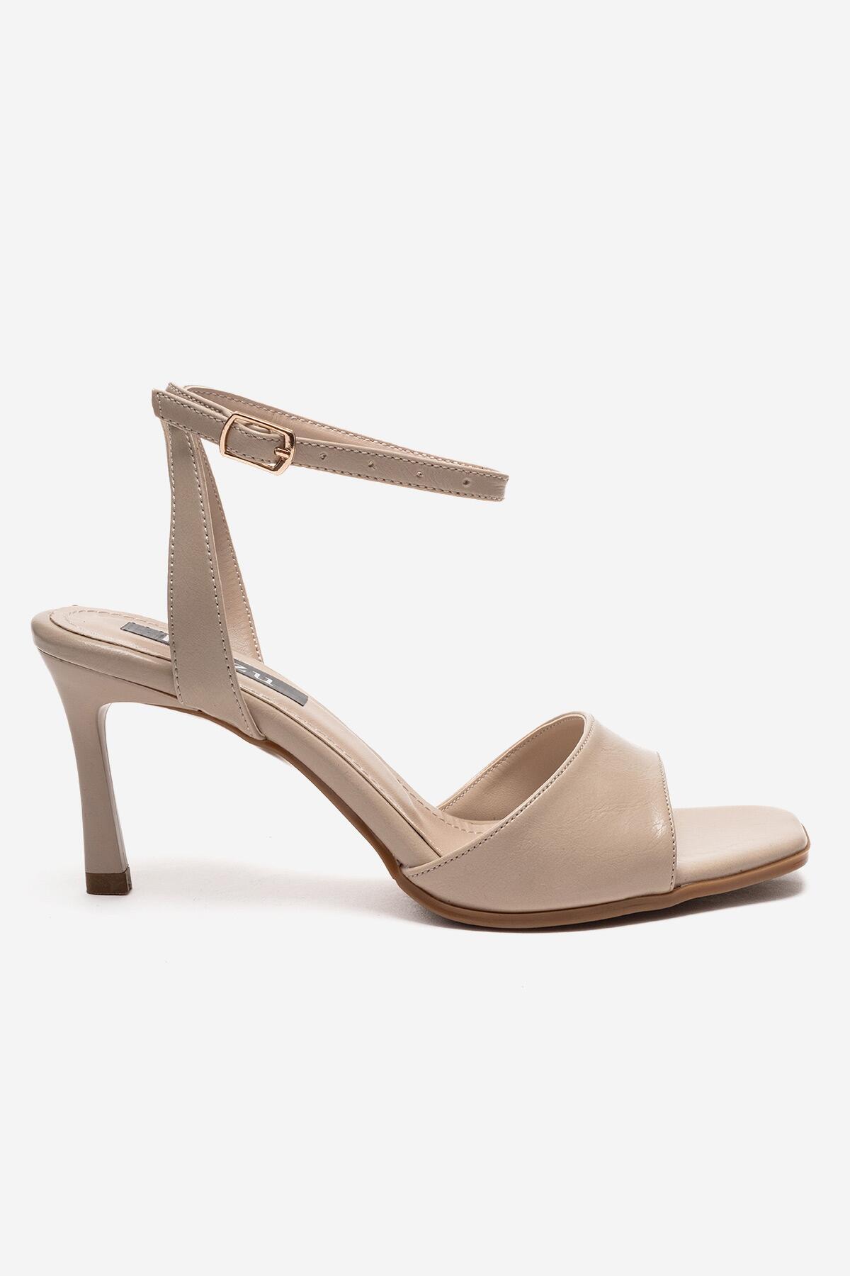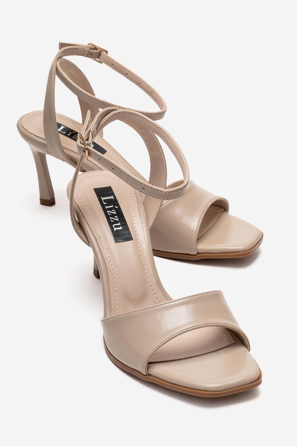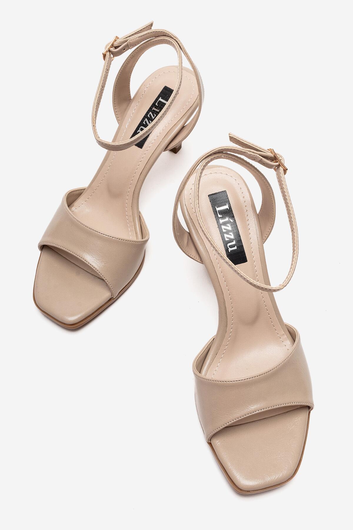 Kadın Burun Açık Bilekten Baretli Topuklu Ayakkabı Paris Bej