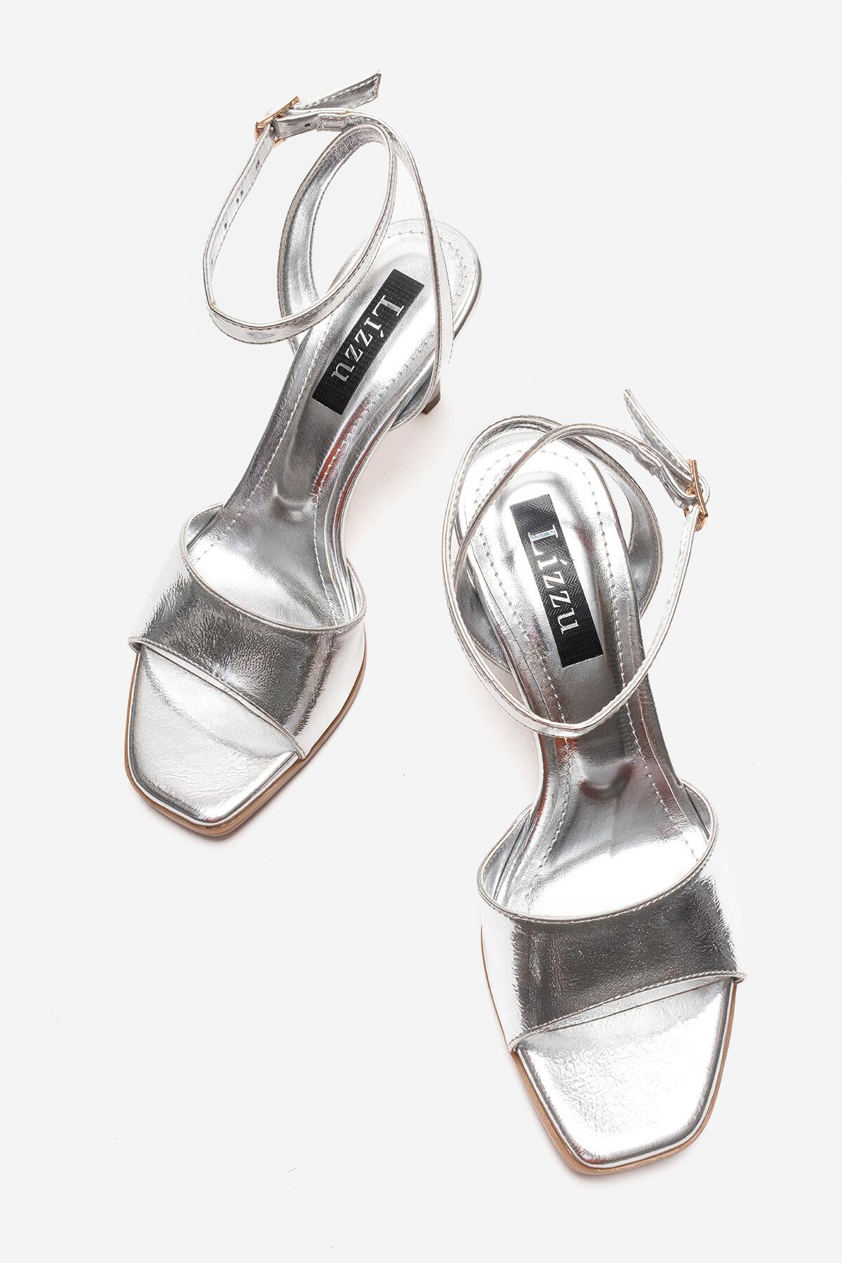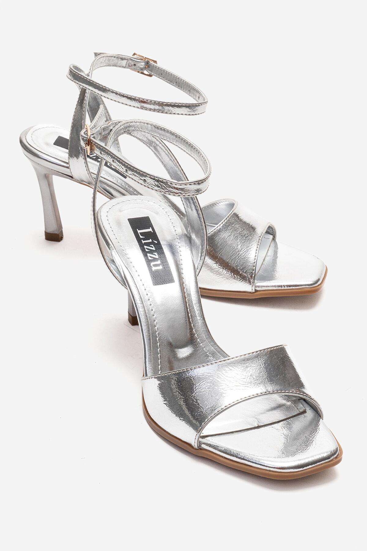 Kadın Burun Açık Bilekten Baretli Topuklu Ayakkabı Paris Gümüş