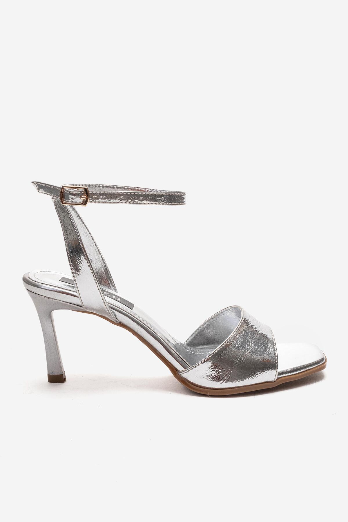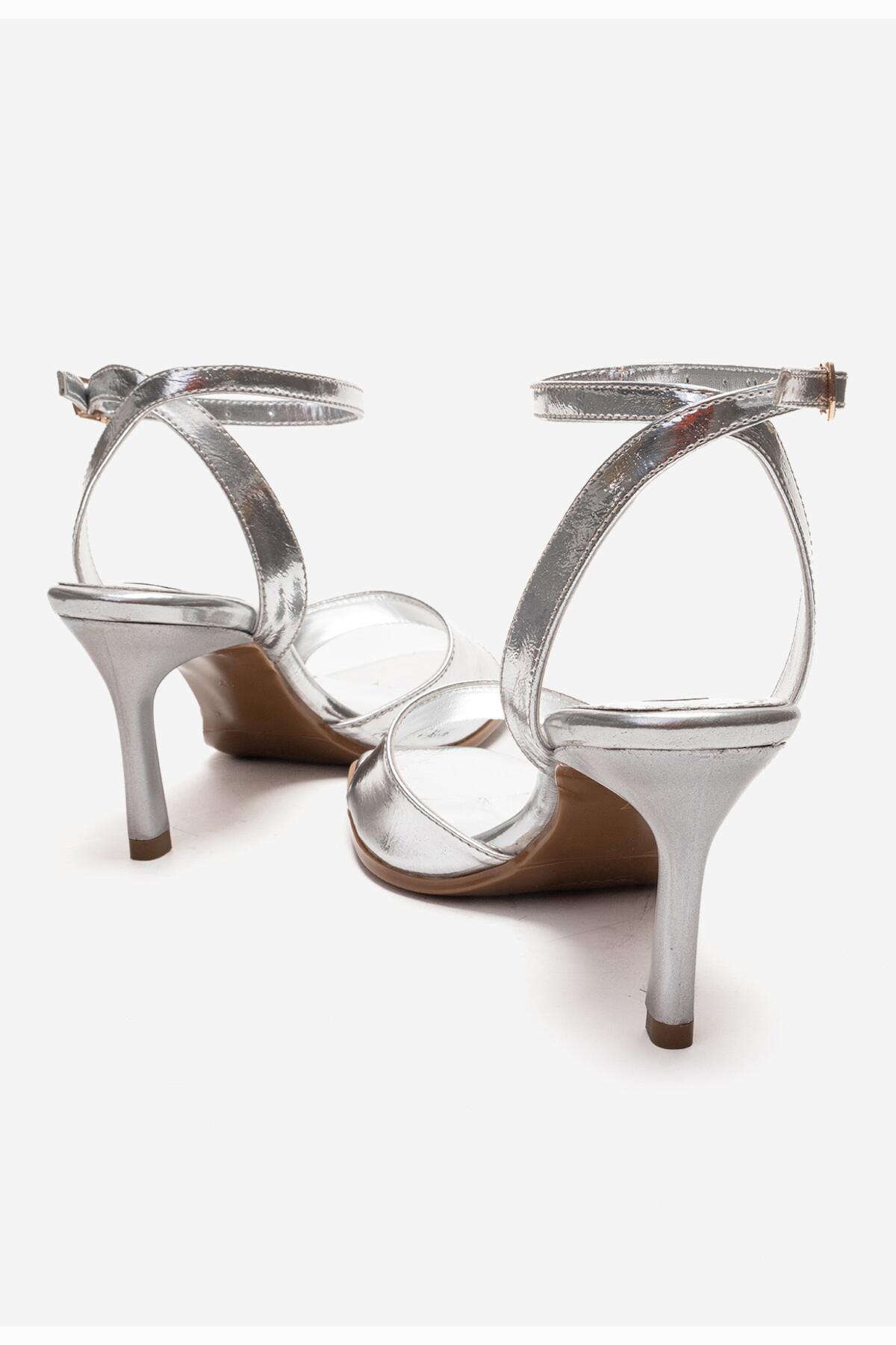 Kadın Burun Açık Bilekten Baretli Topuklu Ayakkabı Paris Gümüş