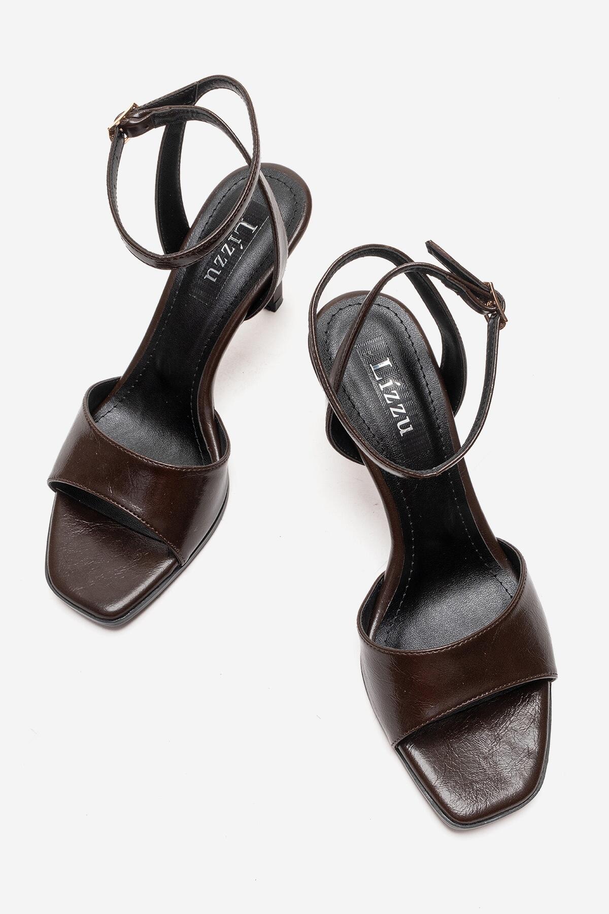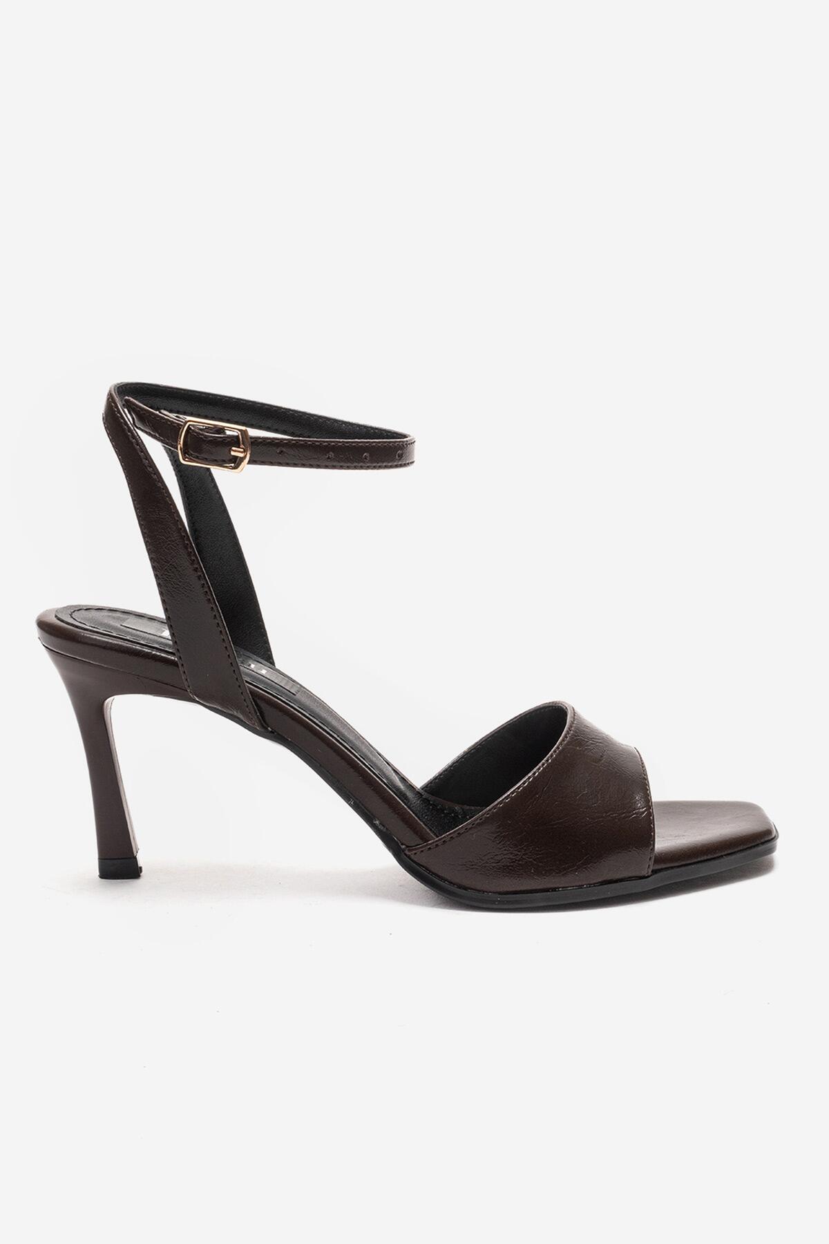 Kadın Burun Açık Bilekten Baretli Topuklu Ayakkabı Paris Kahverengi