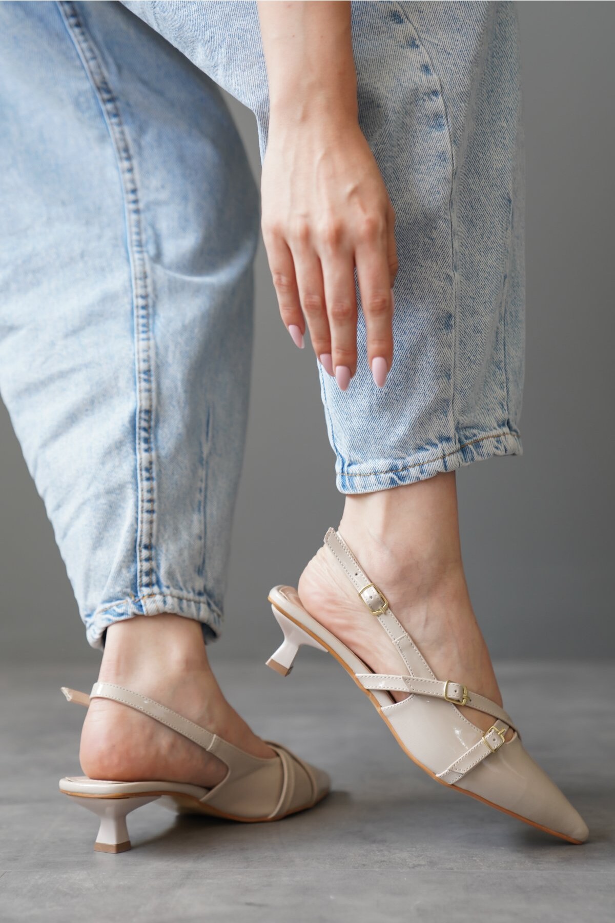 Kadın Çift Biyeli Mini Topuklu Ayakkabı Seeroi Bej