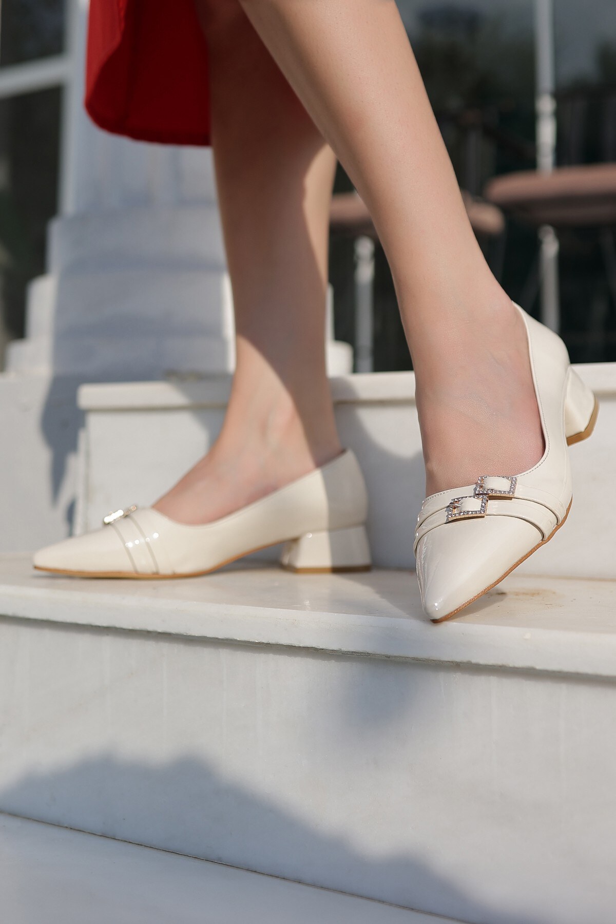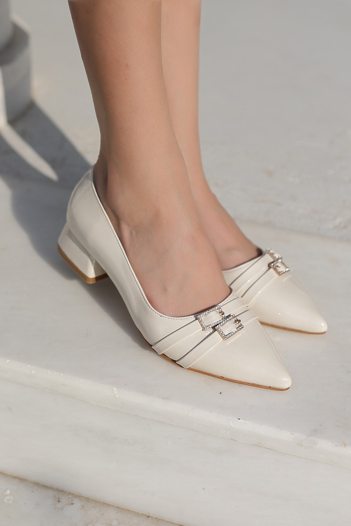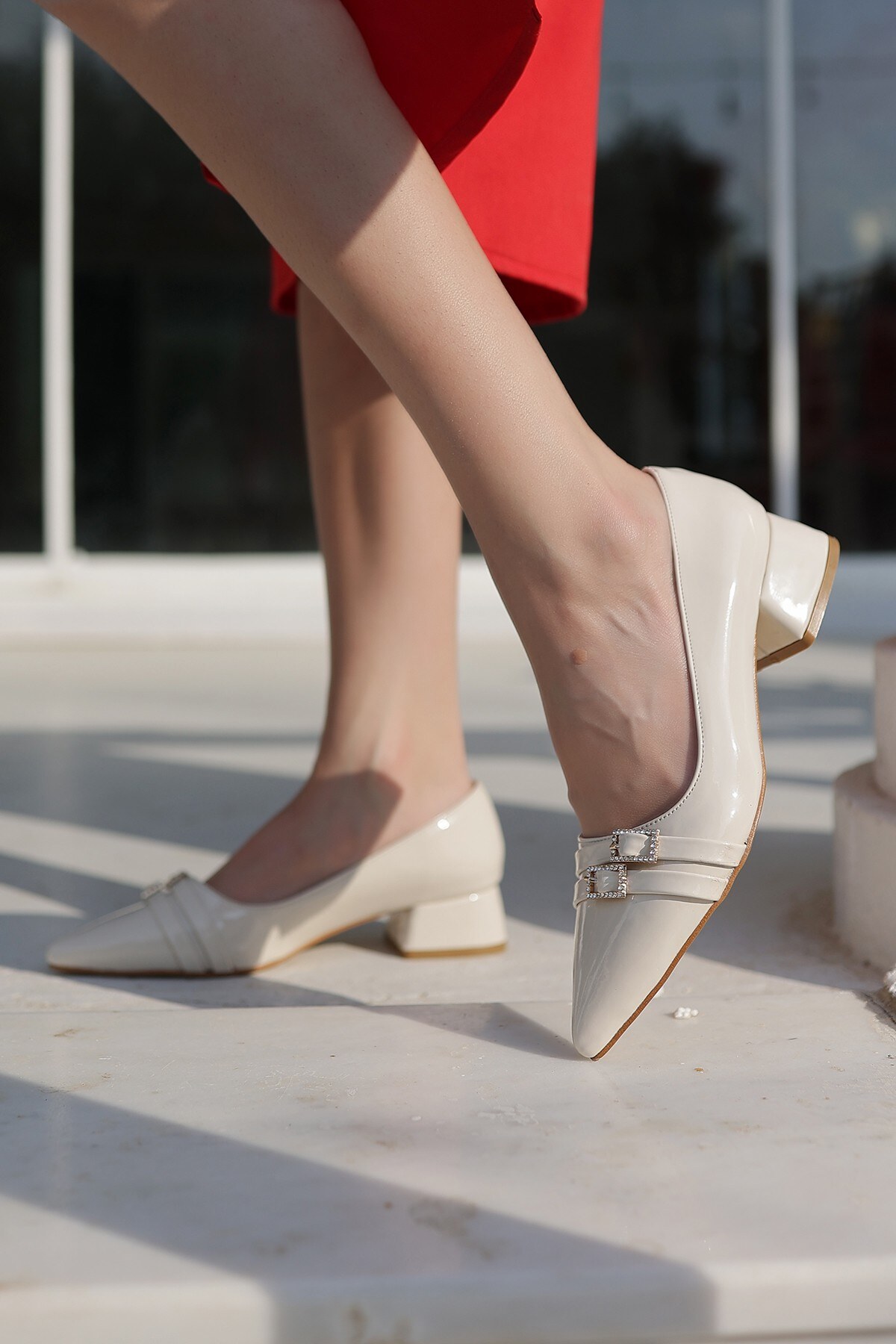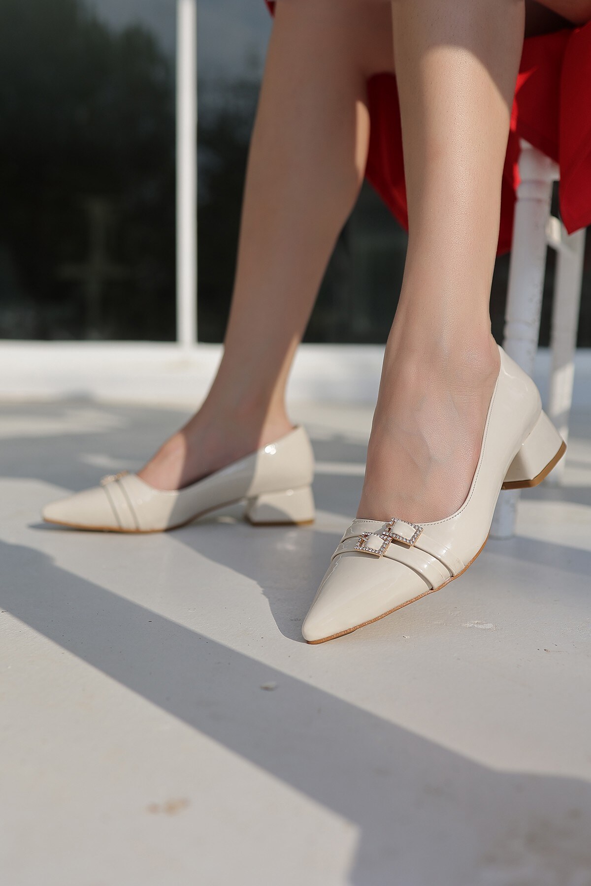 Kadın Çift Tokalı Kısa Topuklu Ayakkabı Simela Bej