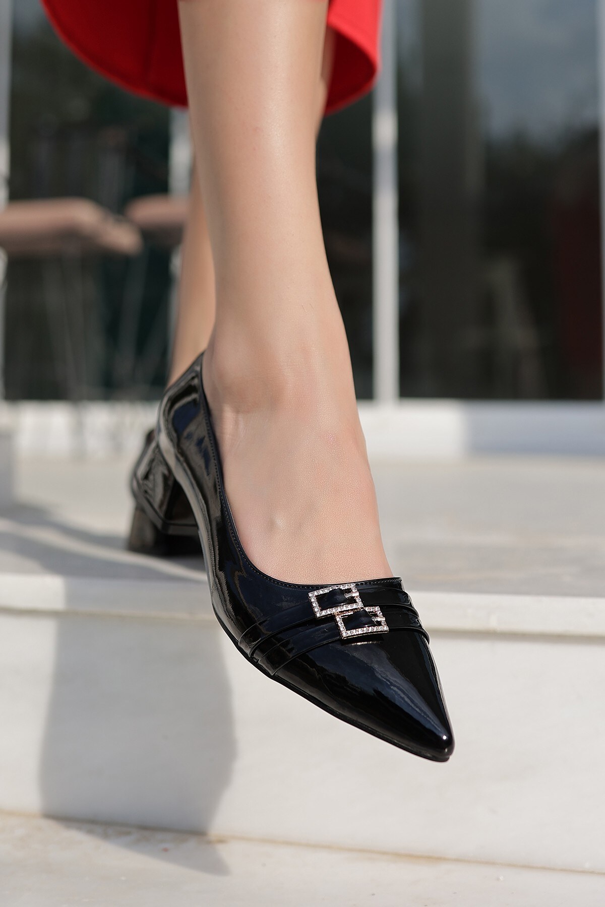 Kadın Çift Tokalı Kısa Topuklu Ayakkabı Simela Siyah