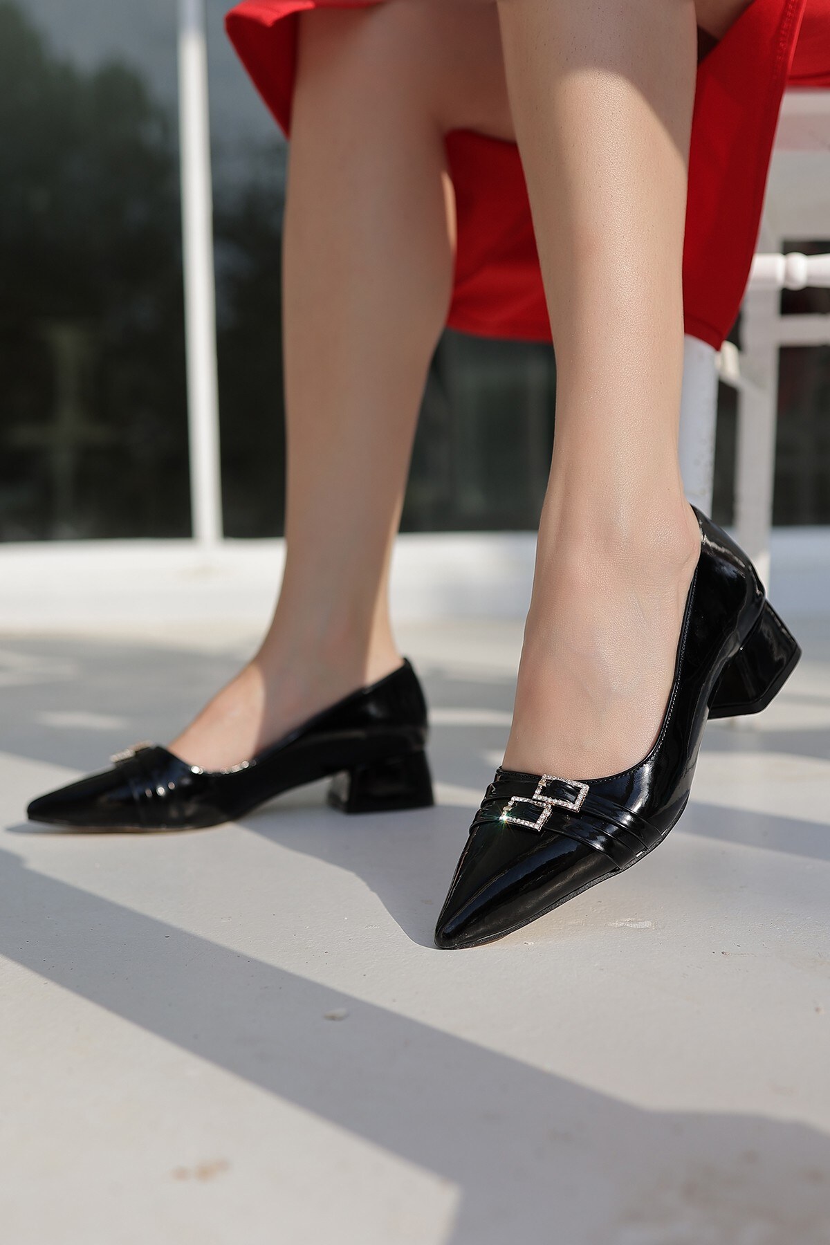 Kadın Küt Burun Kısa Topuklu Ayakkabı Goriva
