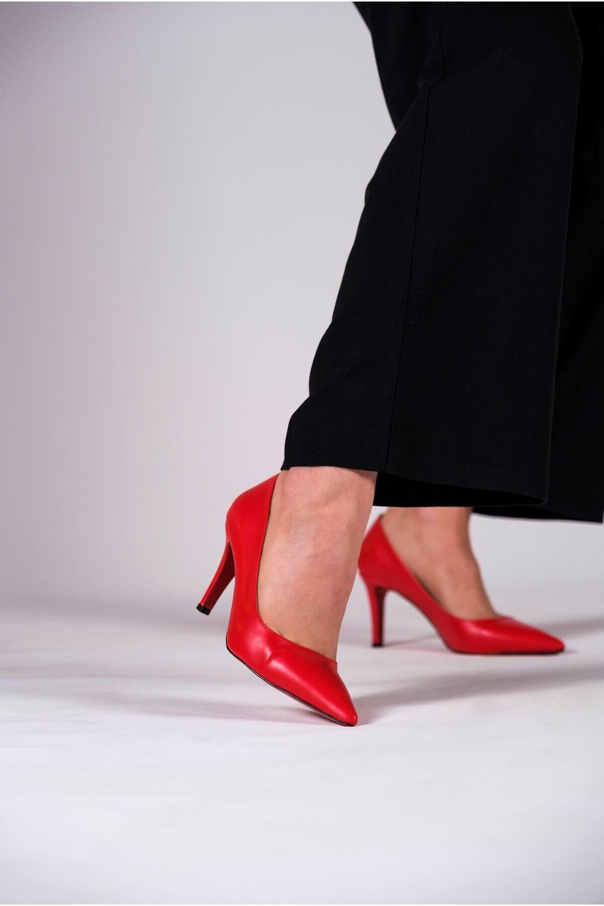 Kadın İnce Topuklu Ayakkabı Stiletto Demure Kırmızı Cilt