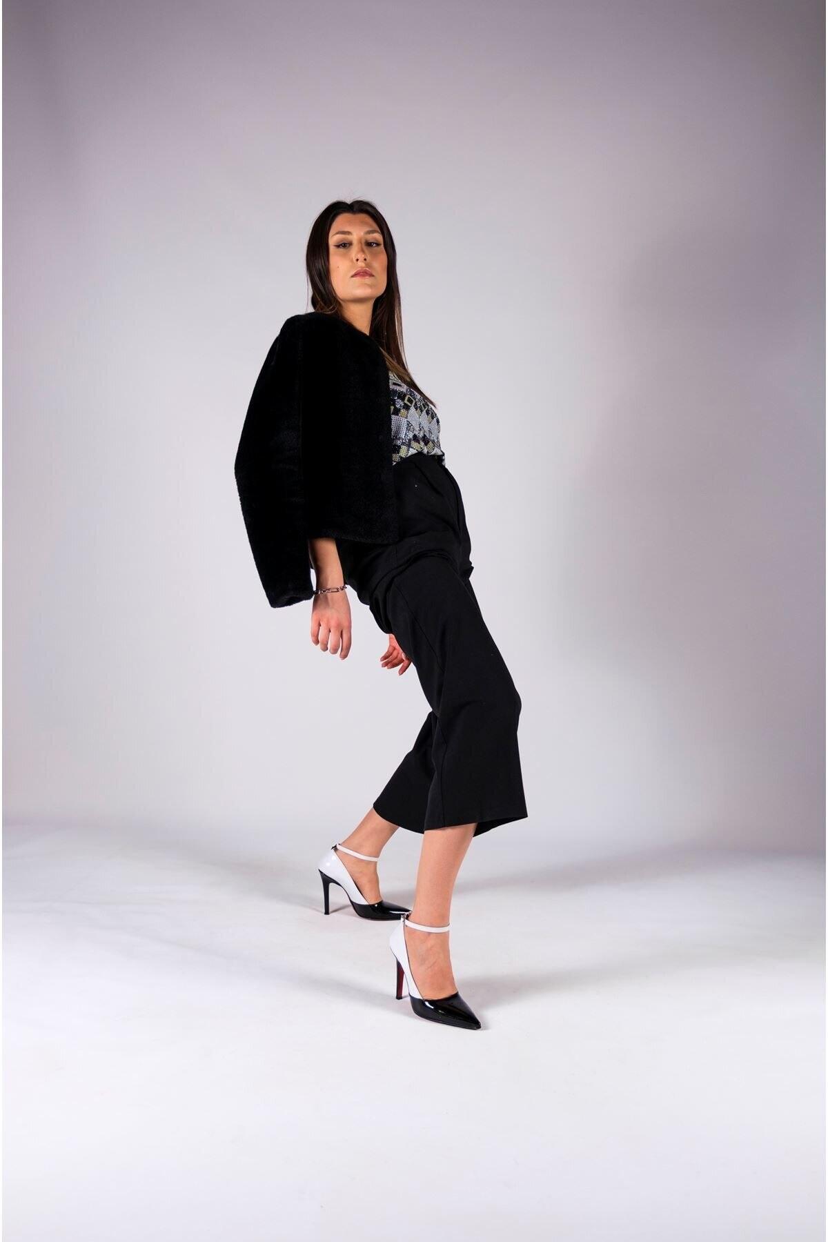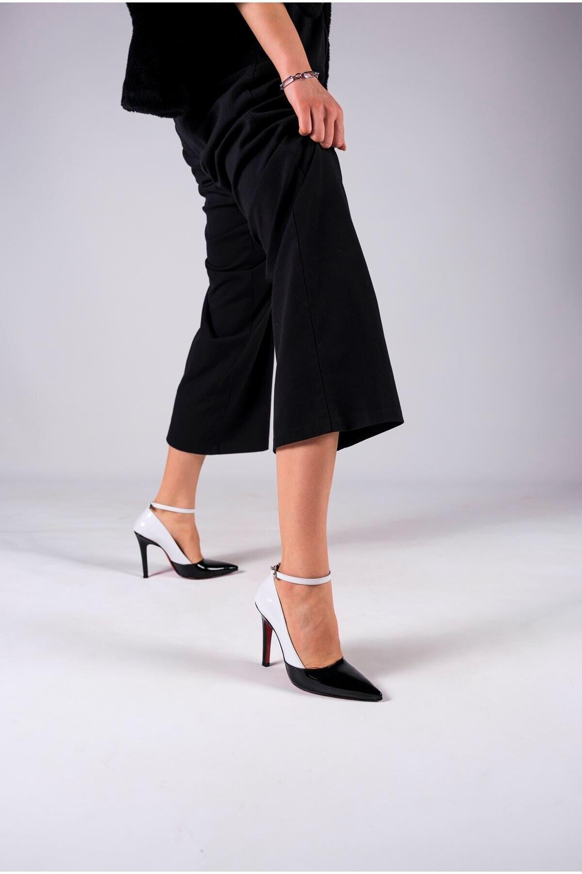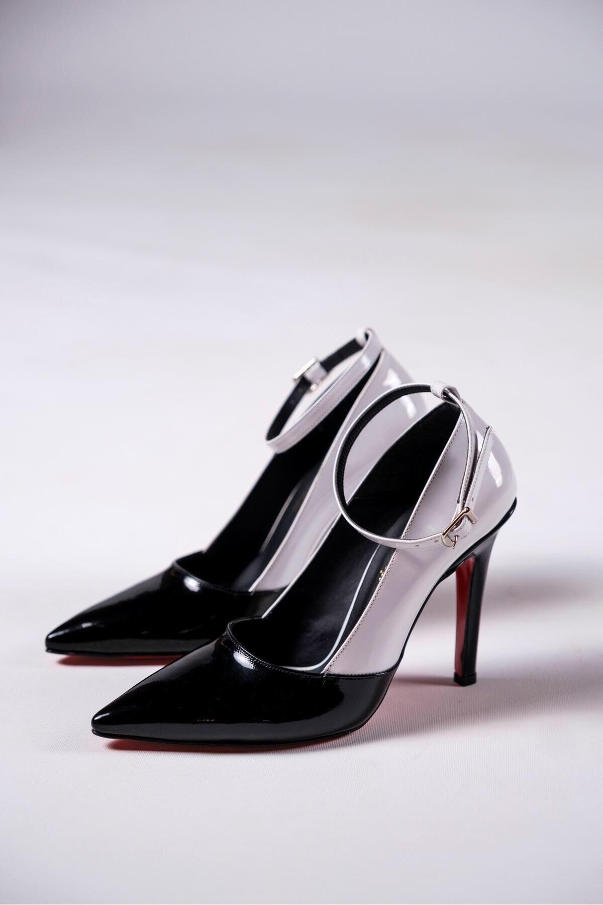Kadın İnce Topuklu Baretli Ayakkabı Stiletto Calit Siyah Beyaz