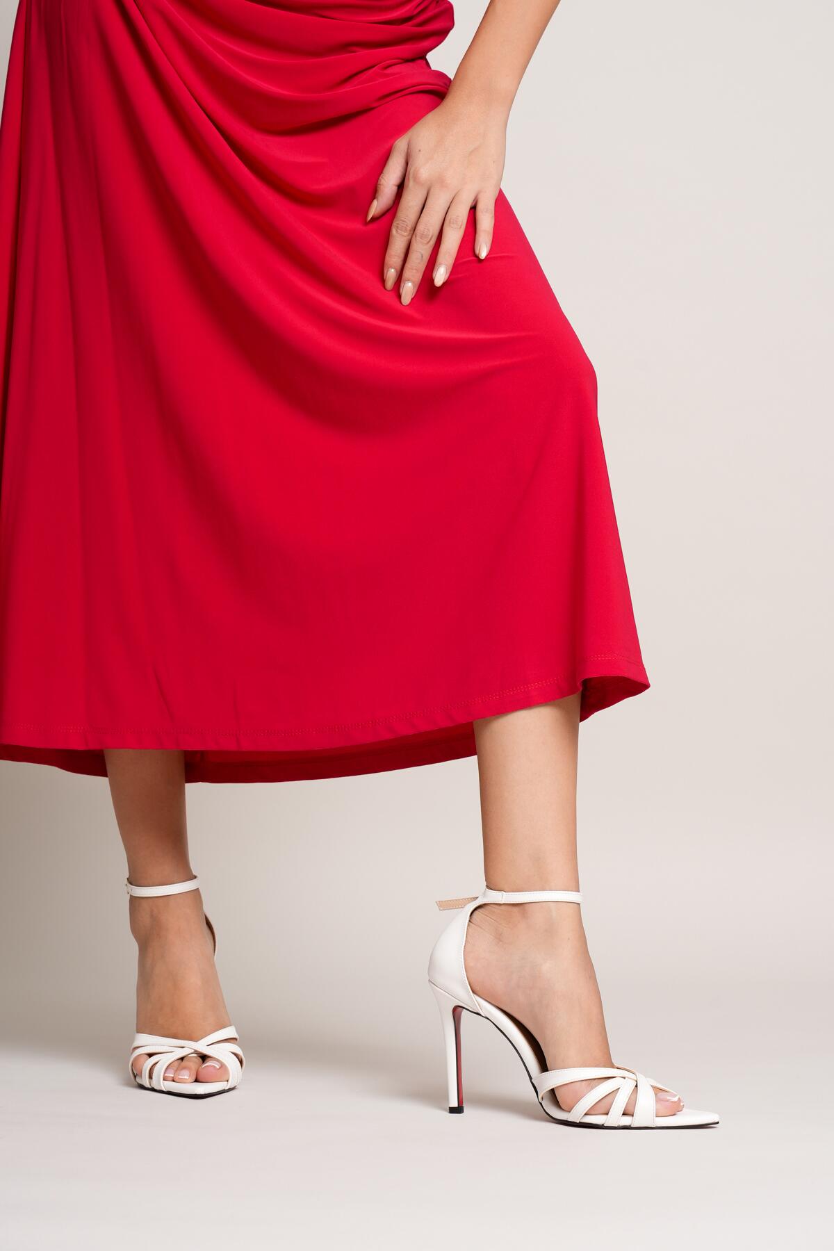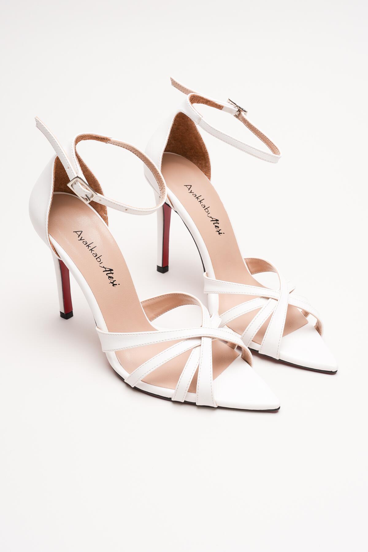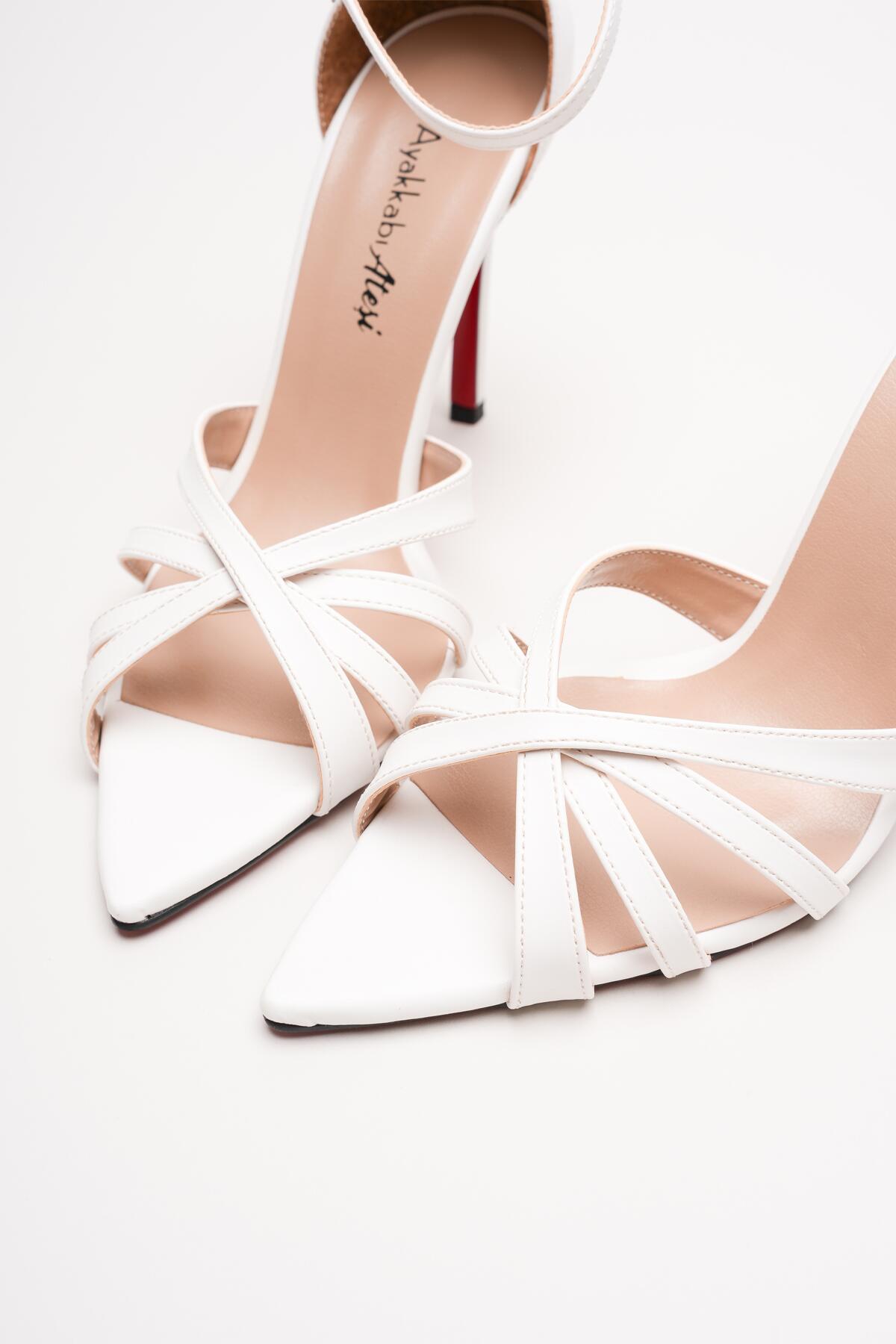 Kadın Özel Tasarım İnce Topuklu Ayakkabı Accosie Beyaz Cilt