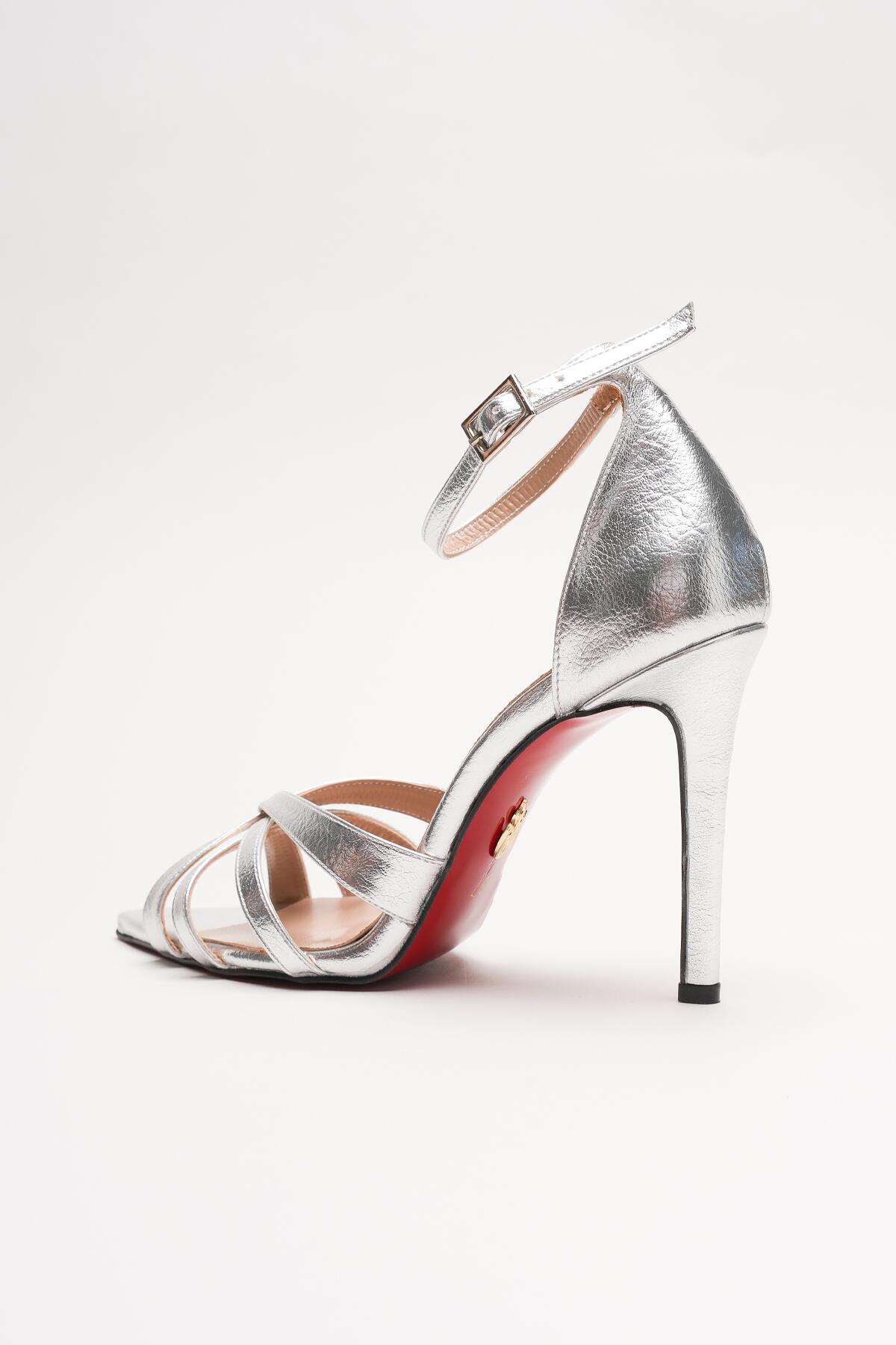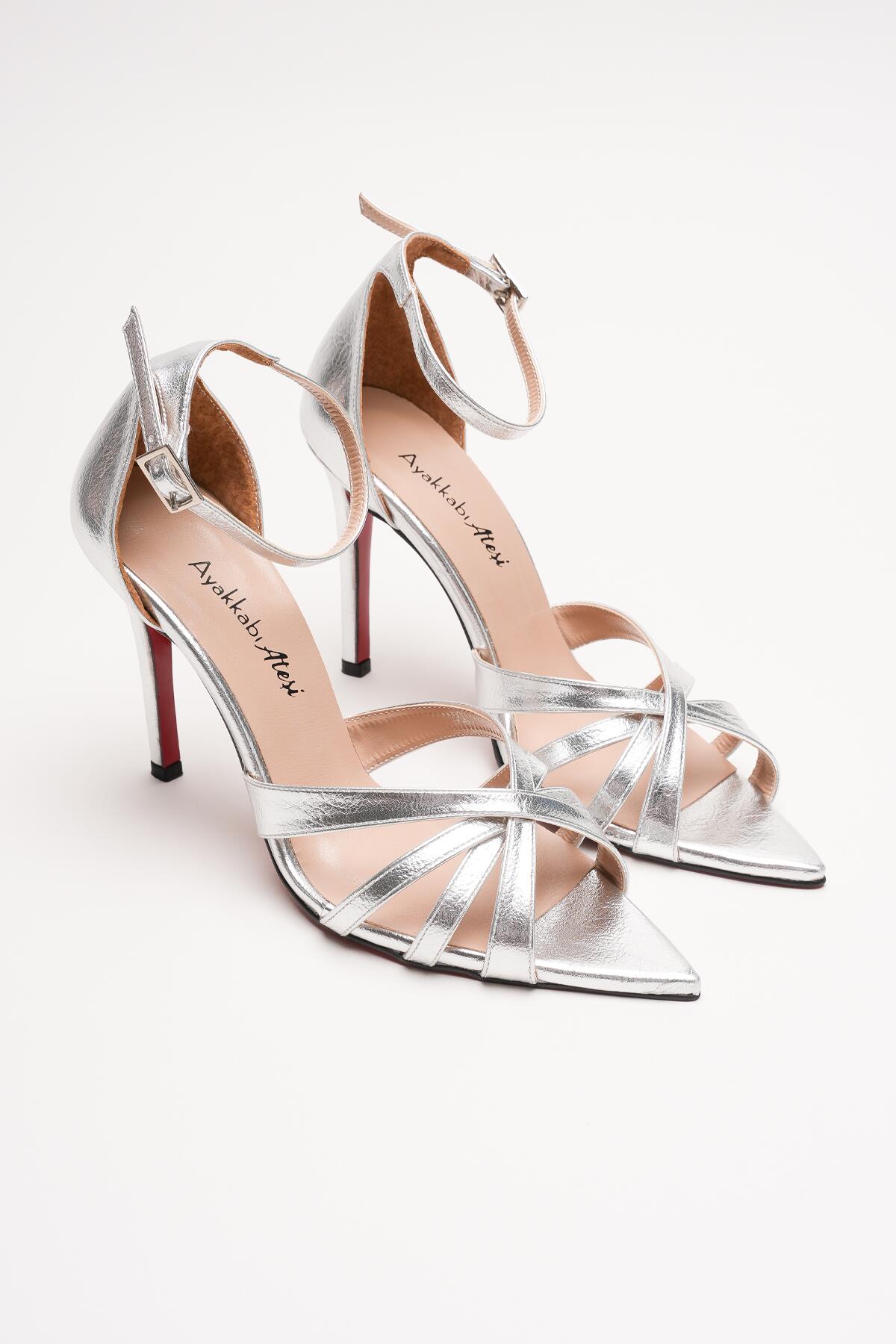 Kadın Özel Tasarım İnce Topuklu Ayakkabı Accosie Gümüş