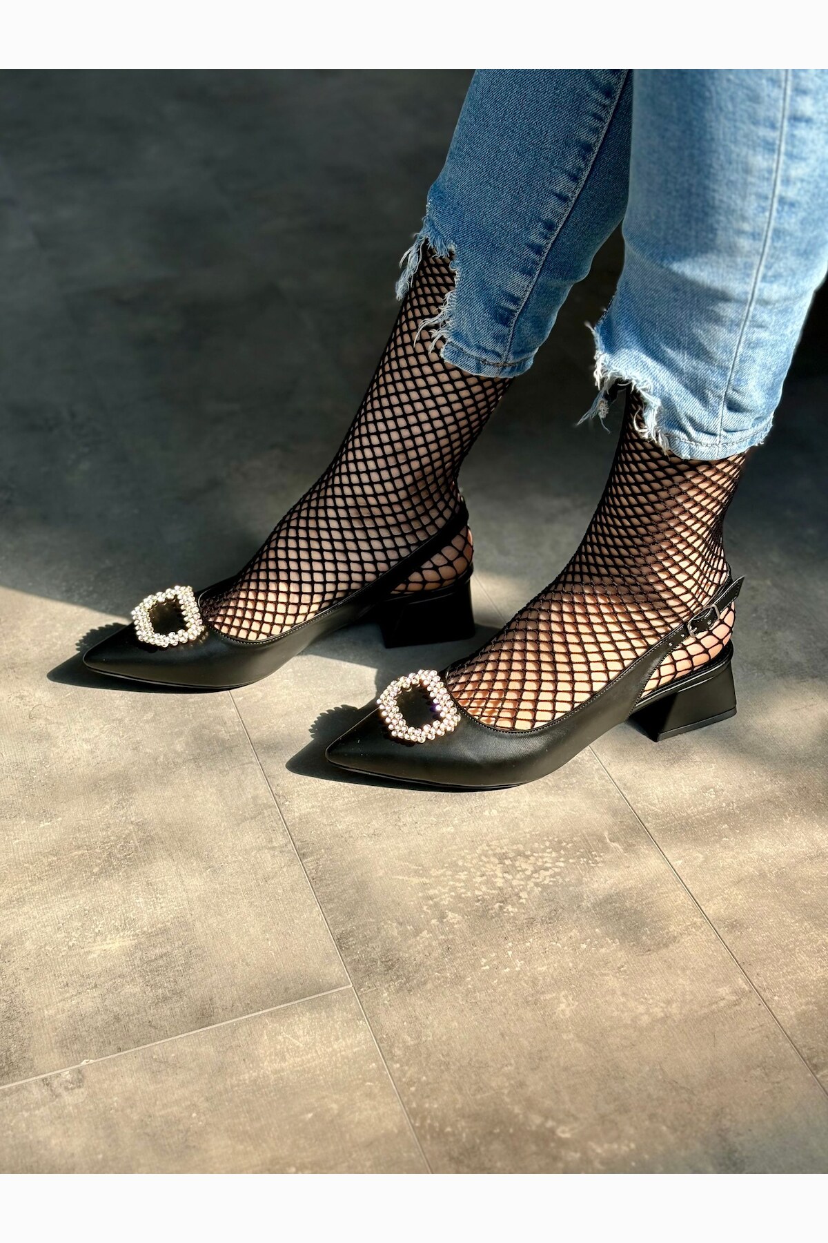 Kadın Silver Taş Kısa Topuklu Ayakkabı Yessi Siyah