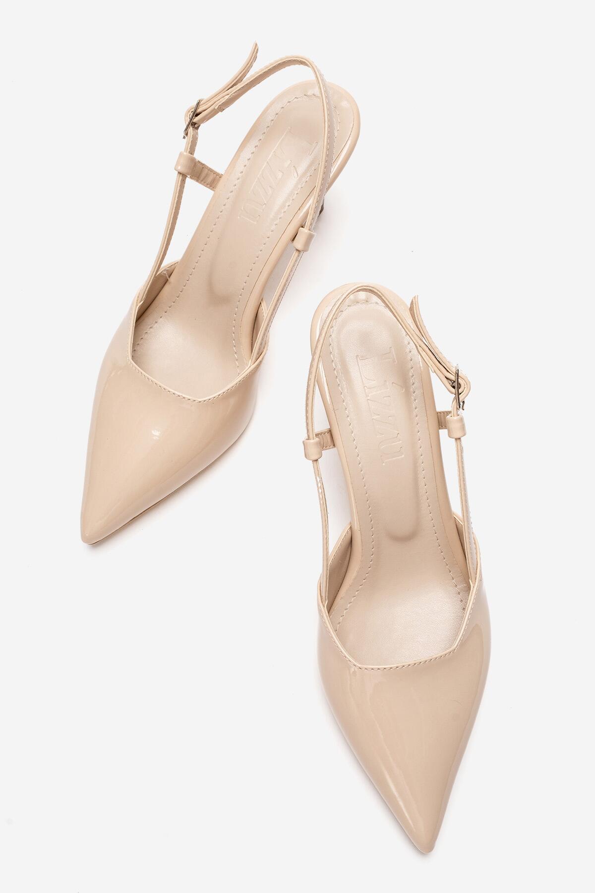 Kadın Sivri Burun Arkası Açık Kısa Topuklu Ayakkabı Cone BEJ RUGAN