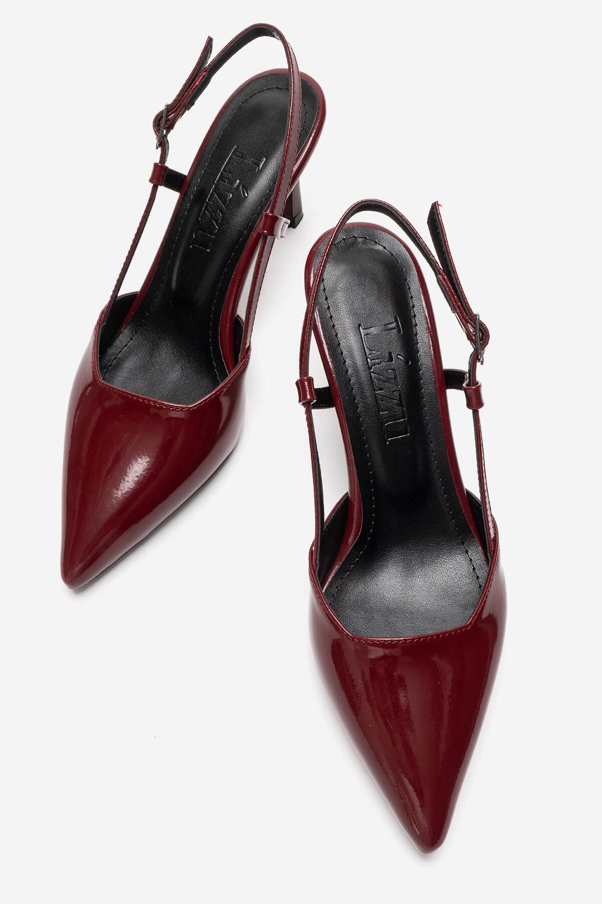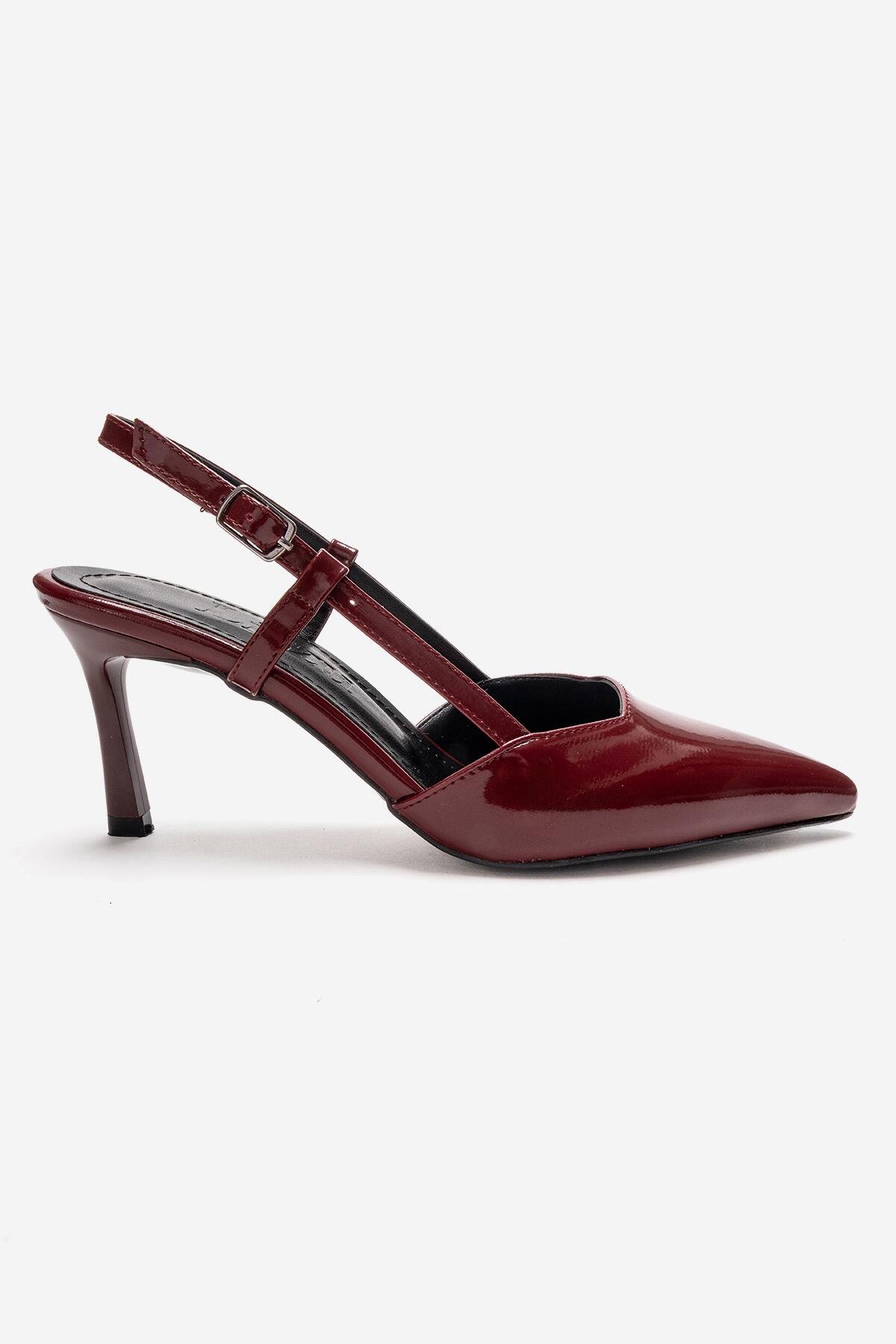 Kadın Sivri Burun Arkası Açık Kısa Topuklu Ayakkabı Cone Bordo
