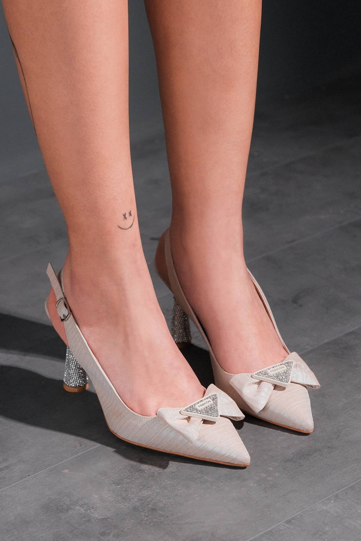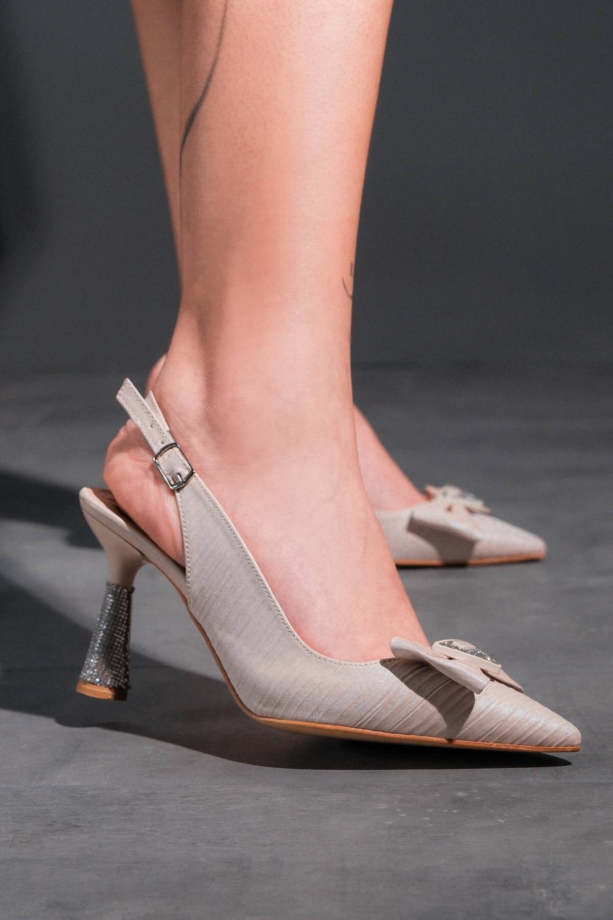 Nude Cilt Bilekten Bağlamalı Kadın Topuklu Ayakkabı Sise