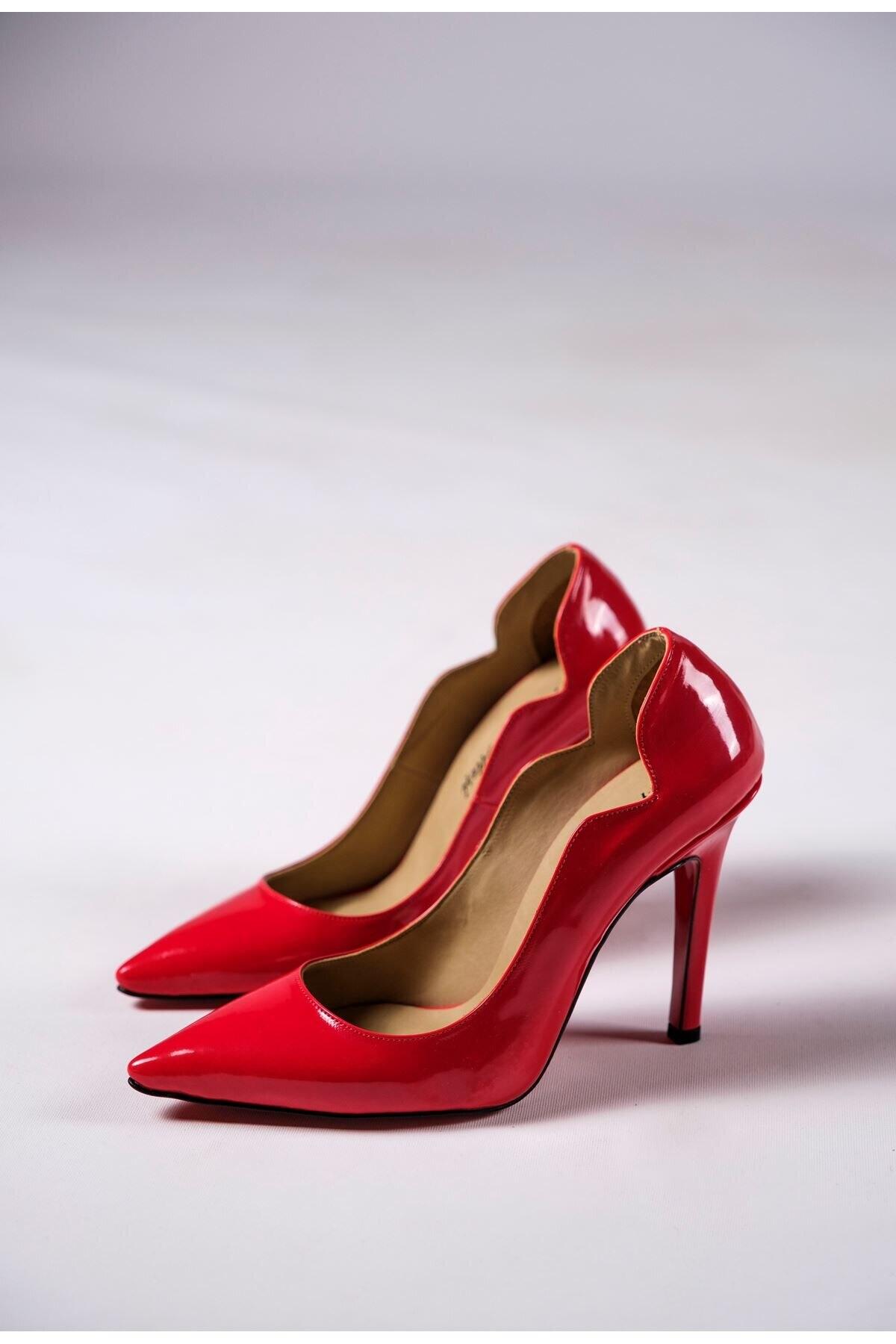Kadın Tasarım Sivri Burun Topuklu Ayakkabı Happy Kırmızı Rugan