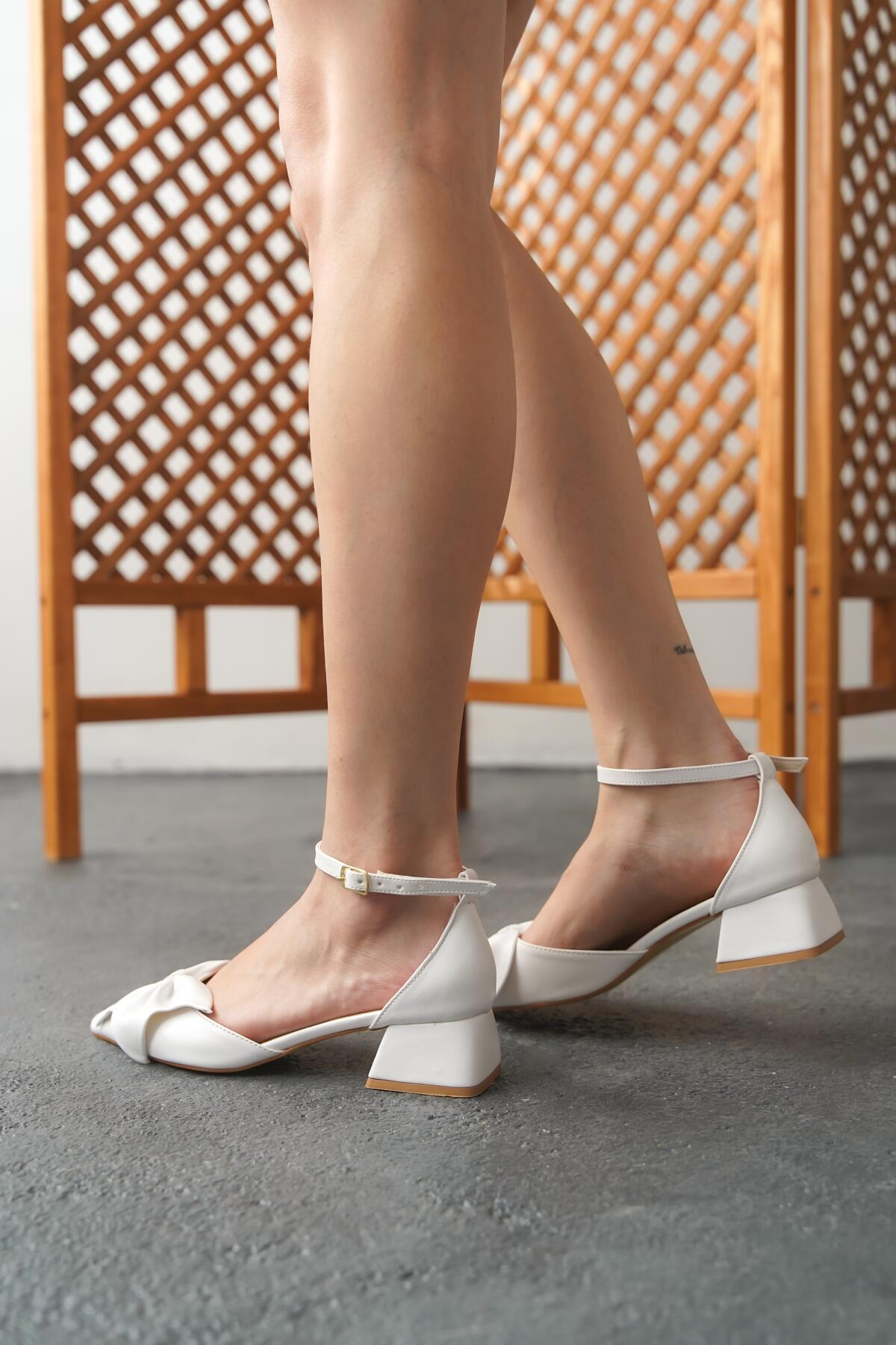 Kadın Tasarım Toka Detaylı Kısa Topuklu Ayakkabı Cassei Beyaz Cilt