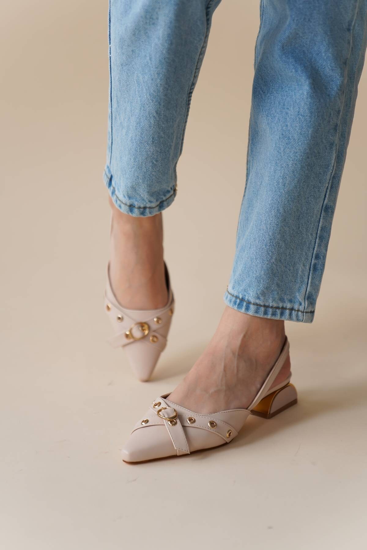 Kadın Toka Detaylı Kısa Topuklu Ayakkabı Frona Nude Cilt