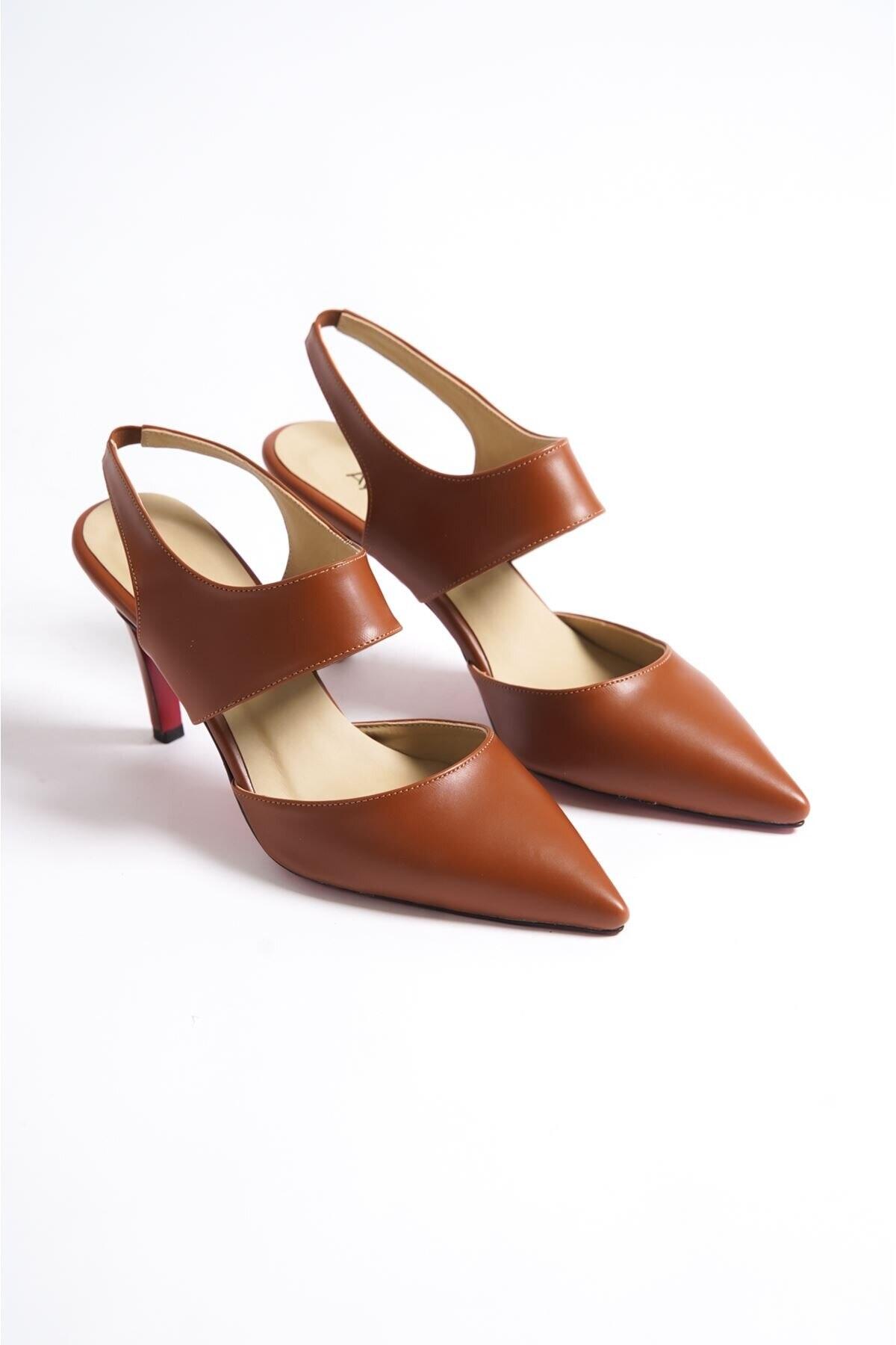 Kadın Troklu Özel Tasarım İnce Topuklu Ayakkabı Stiletto Tamara Taba Cilt