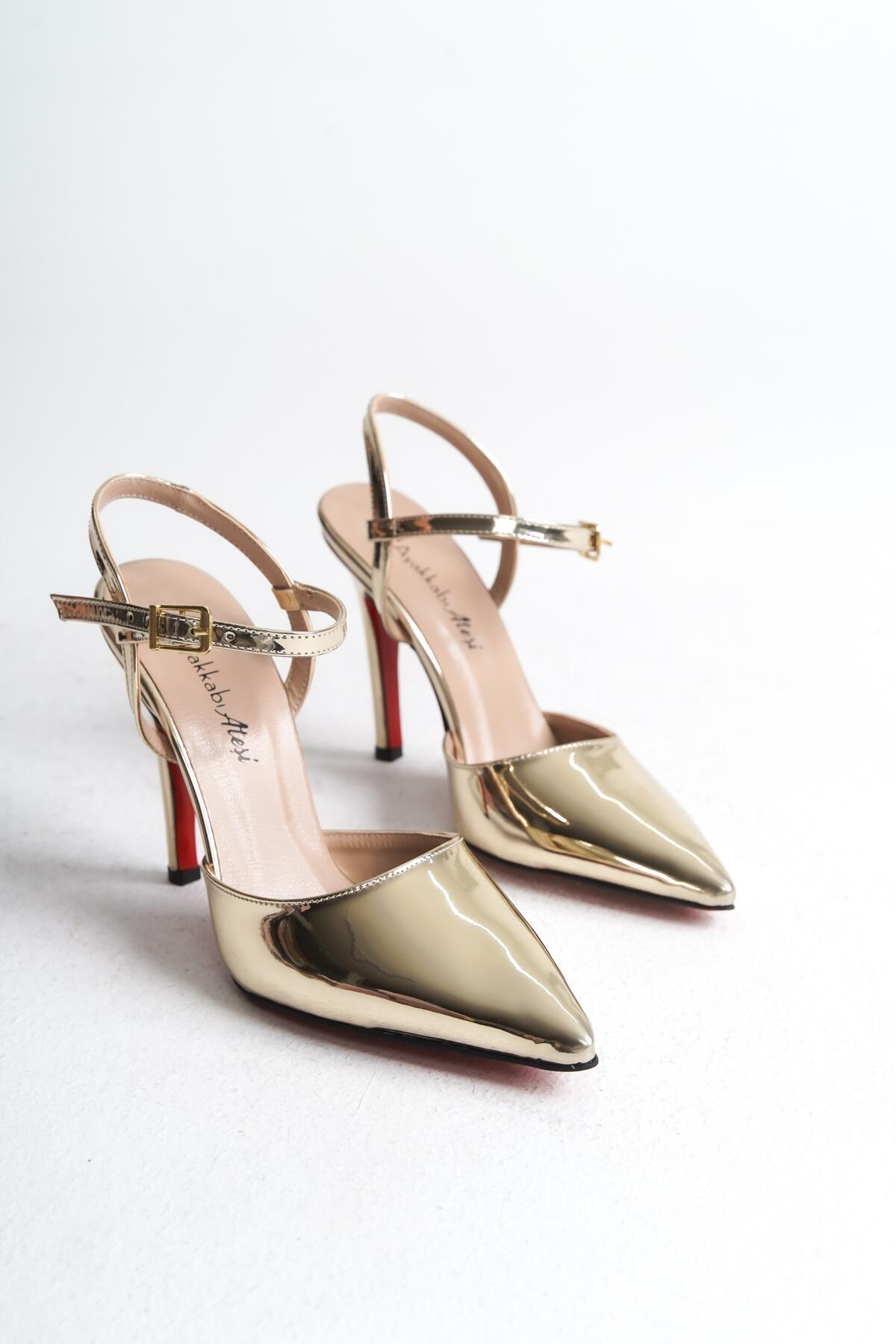 Kadın Tek Baret İnce Topuklu Ayakkabı Mersa Altın Ayna