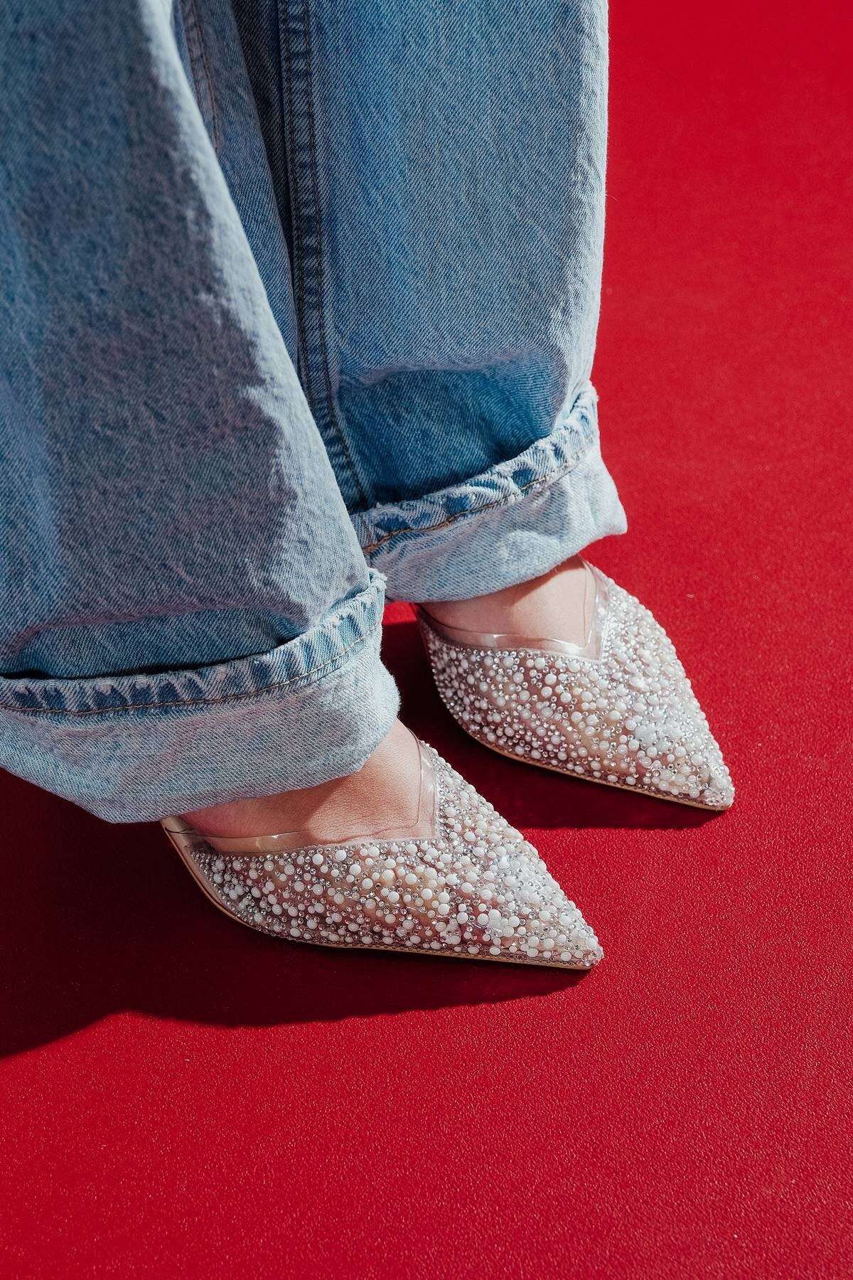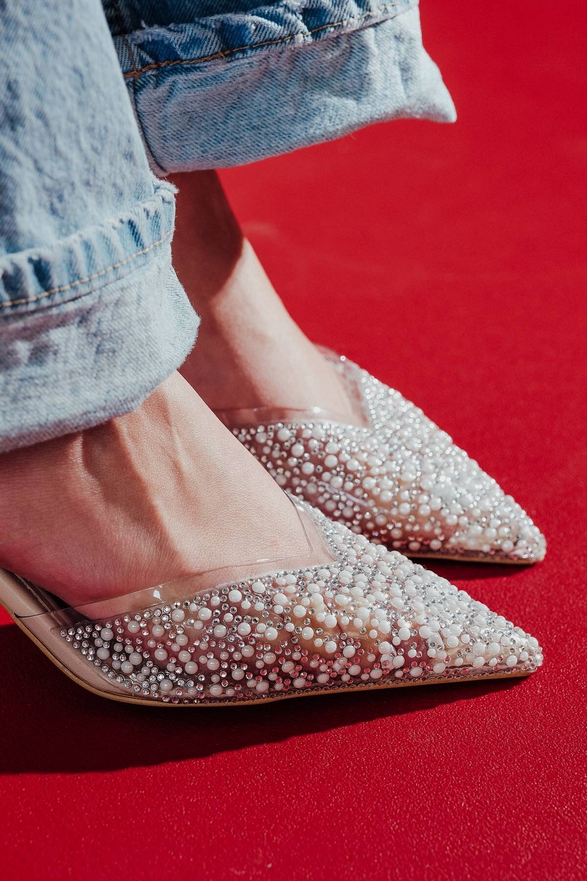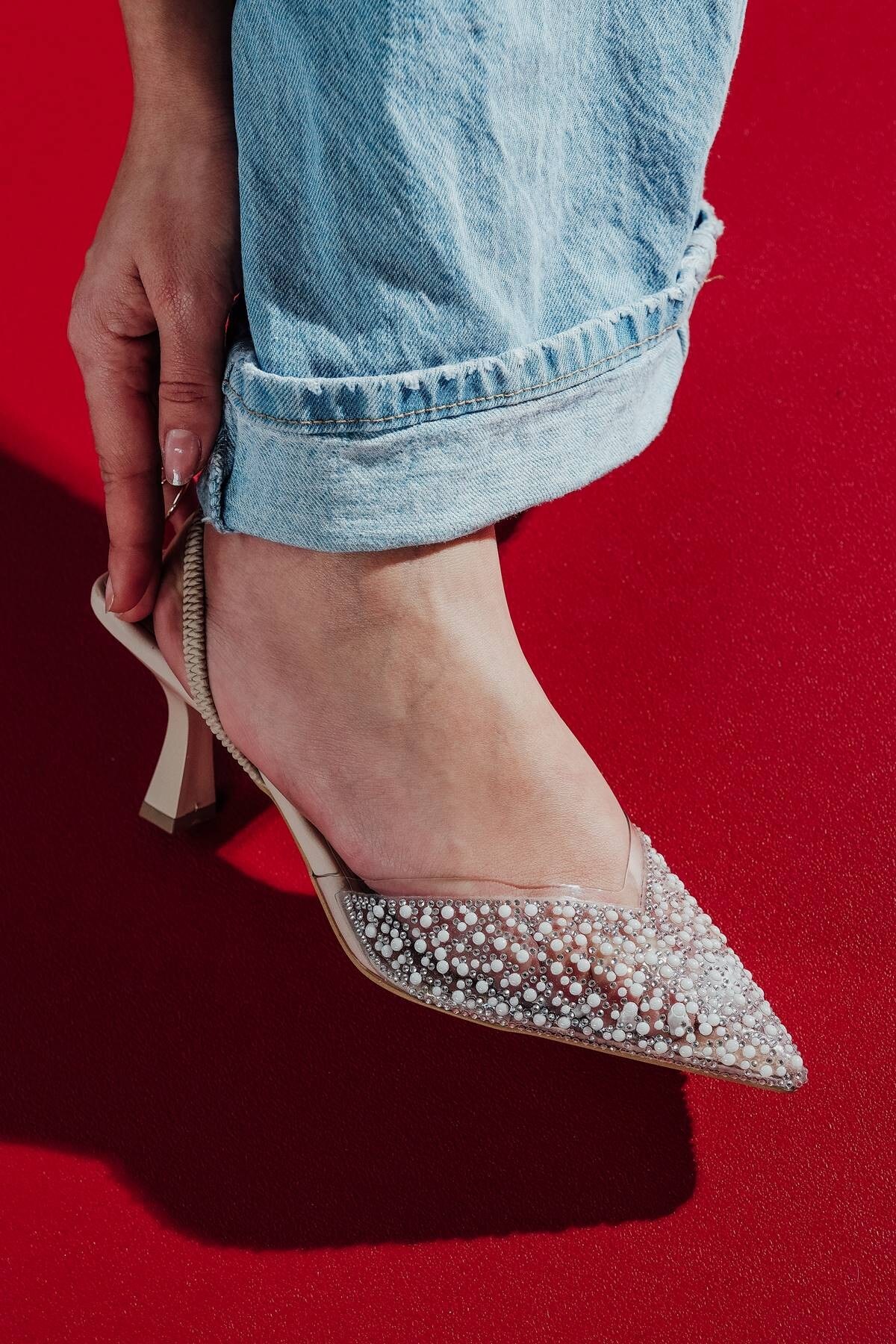 Nude Cilt Şeffaf Taş Detaylı Kadın Stiletto Stila Nude