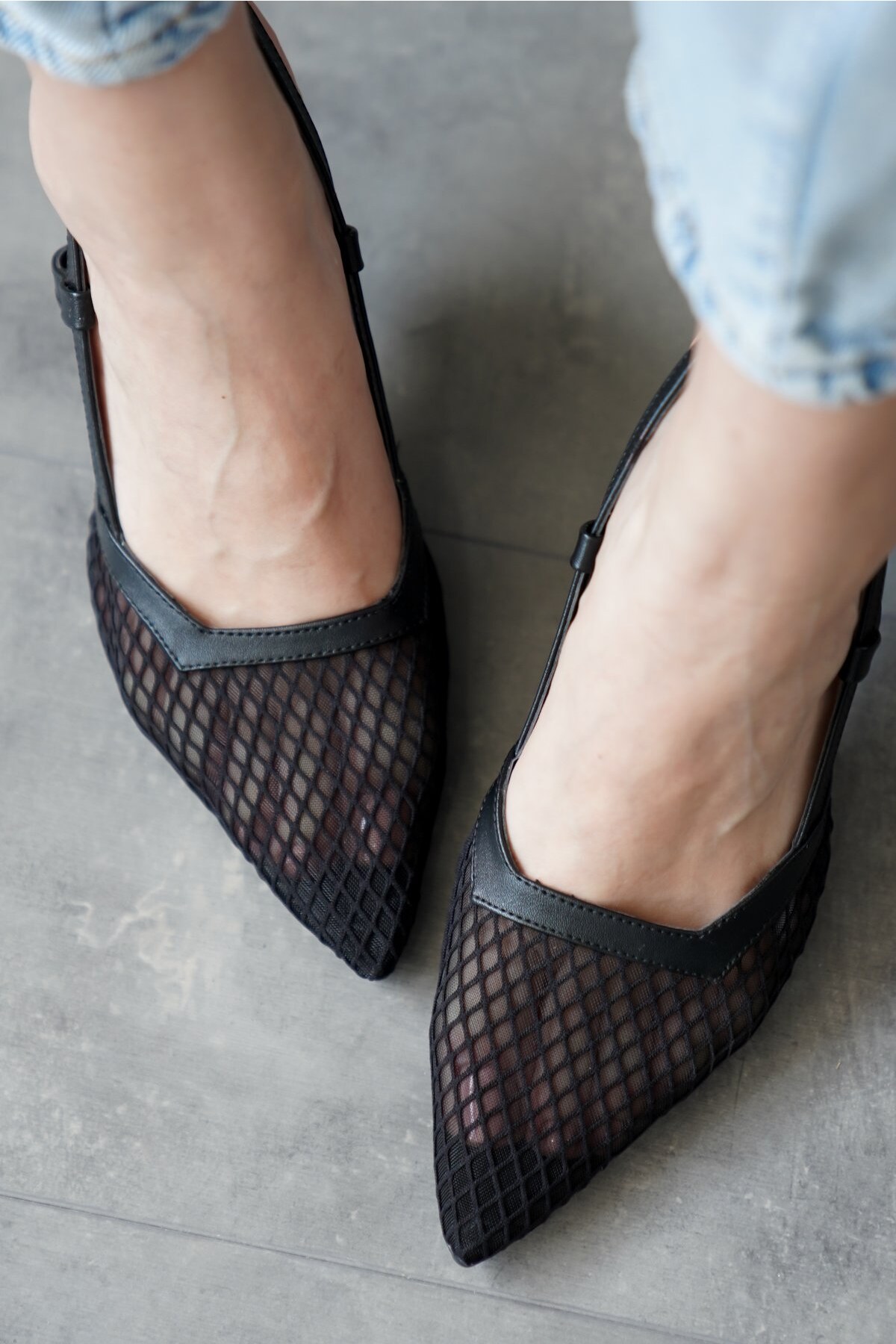 Siyah Cilt Fileli Tasarım Kadın Topuklu Ayakkabı Tatiana Siyah