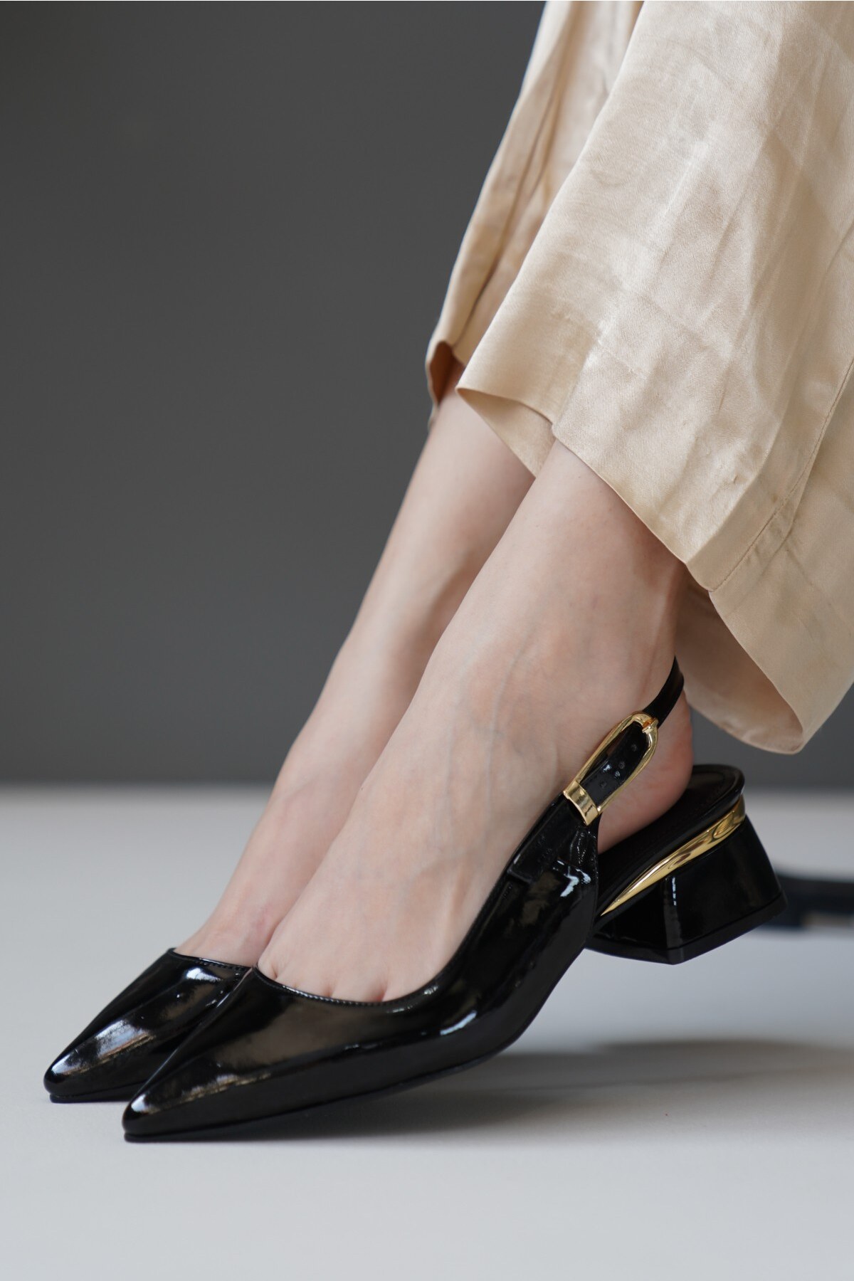 Kadın Gold Detaylı Topuklu Ayakkabı Vorina Siyah