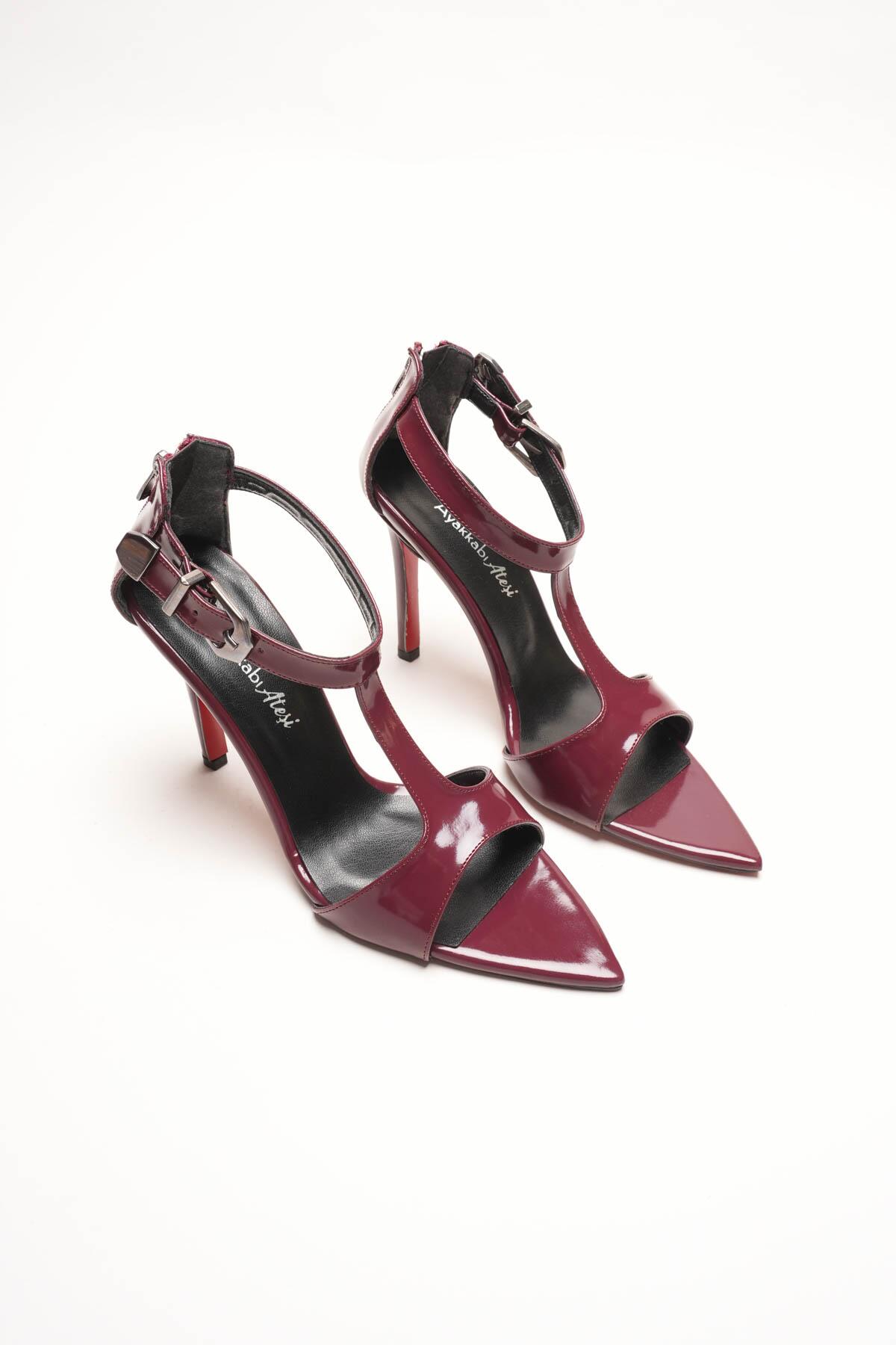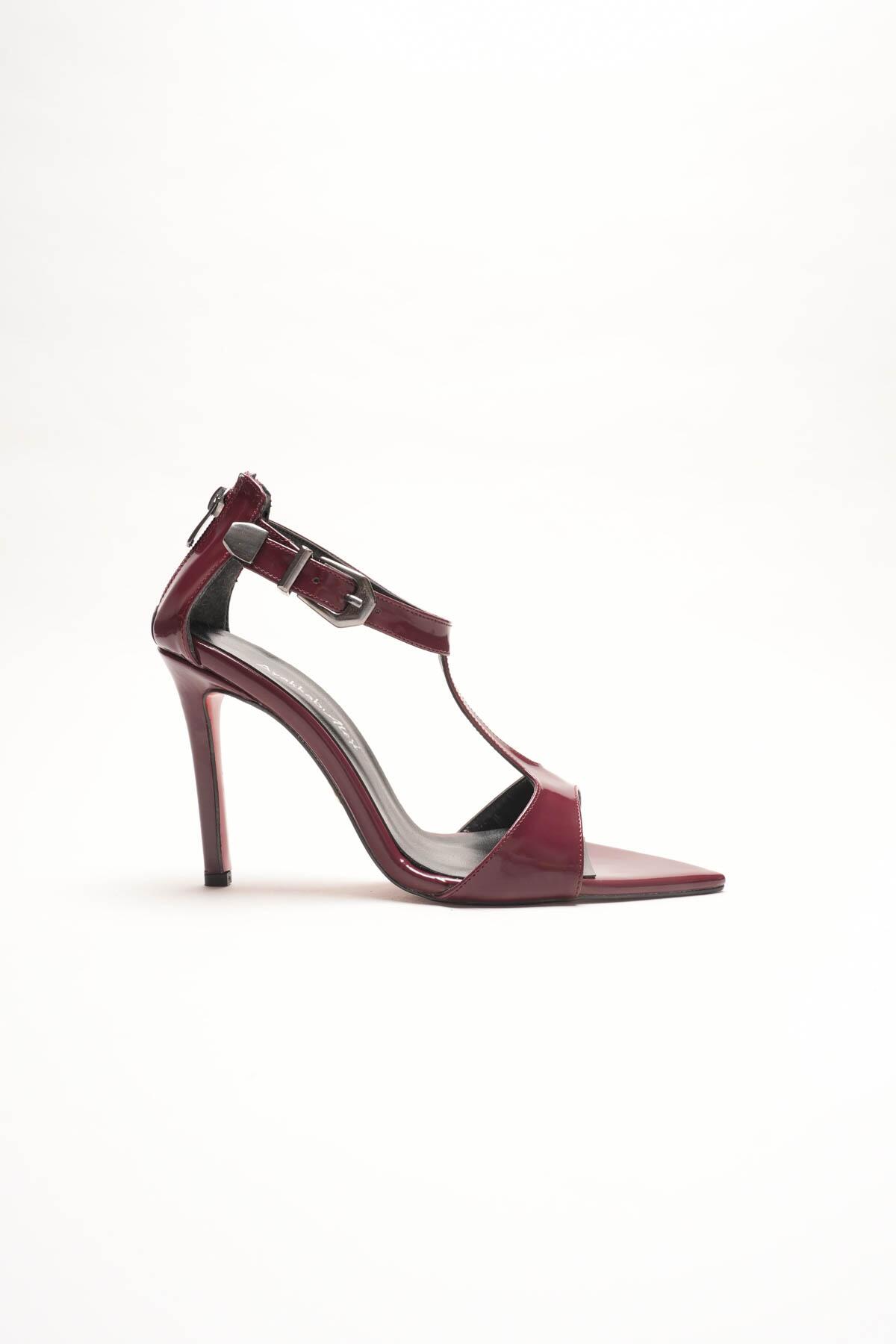 T-bantlı Toka Detaylı Sivri Burun İnce Topuklu Stiletto Ayakkabı Tories Bordo