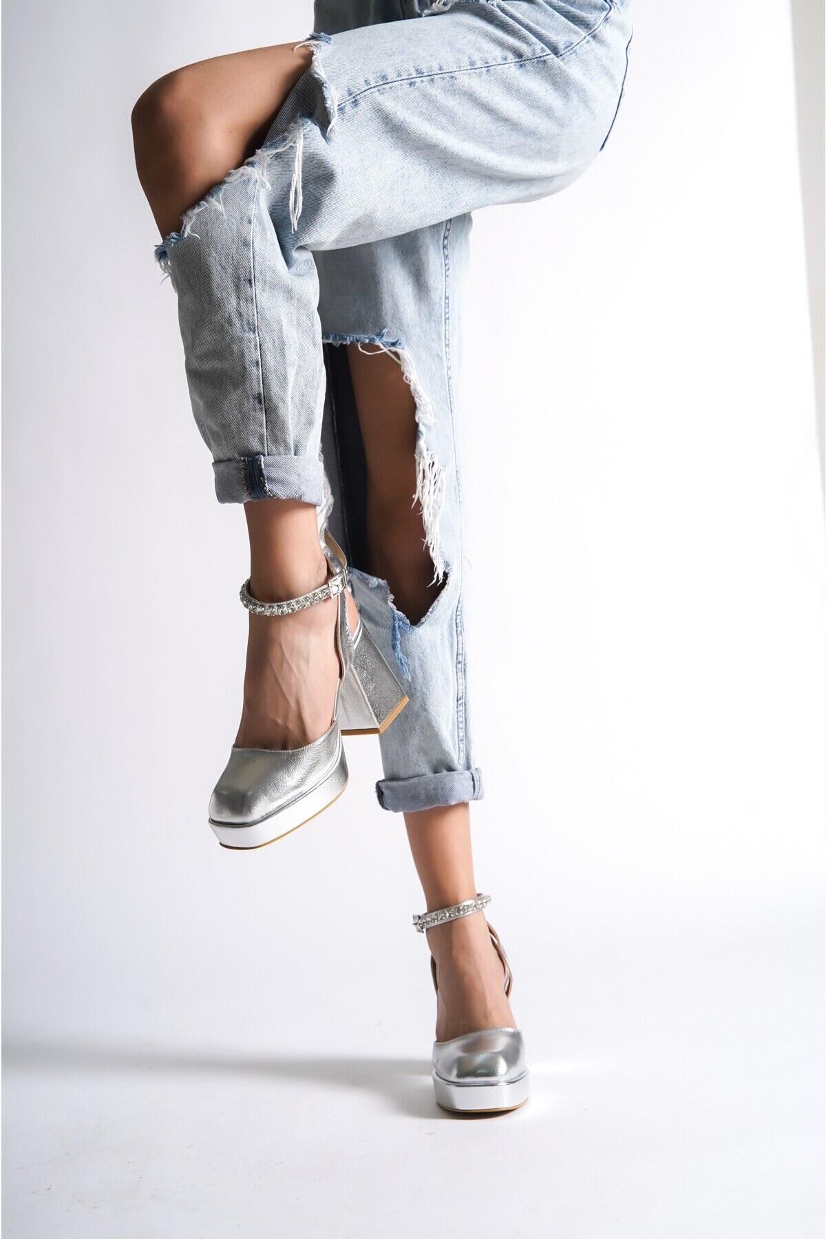 Kadın Alçak Platform Kalın Topuklu Ayakkabı Alice Gümüş