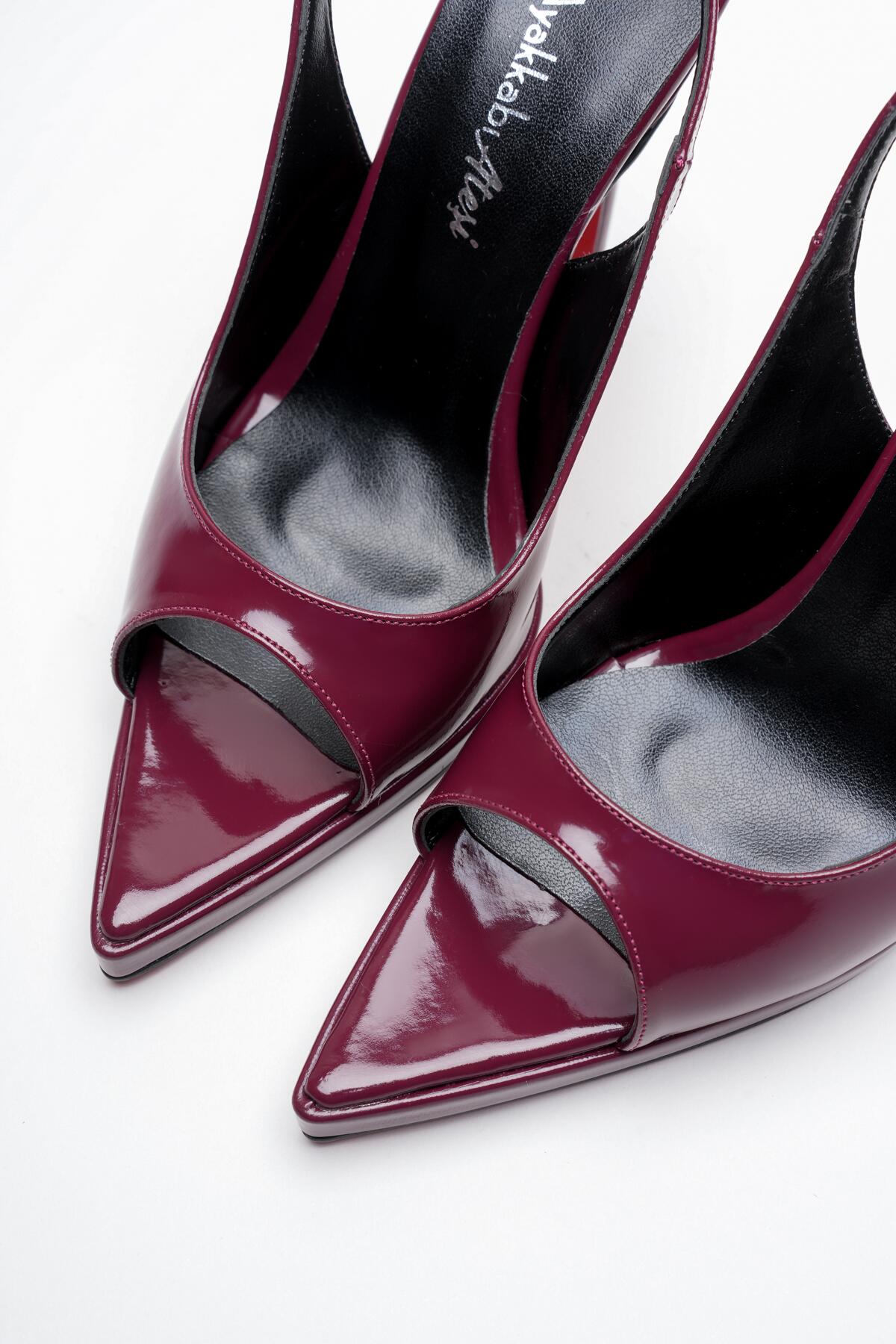 Kadın Arka Açık Sivri Burun İnce Topuklu Platform Ayakkabı Hari Bordo