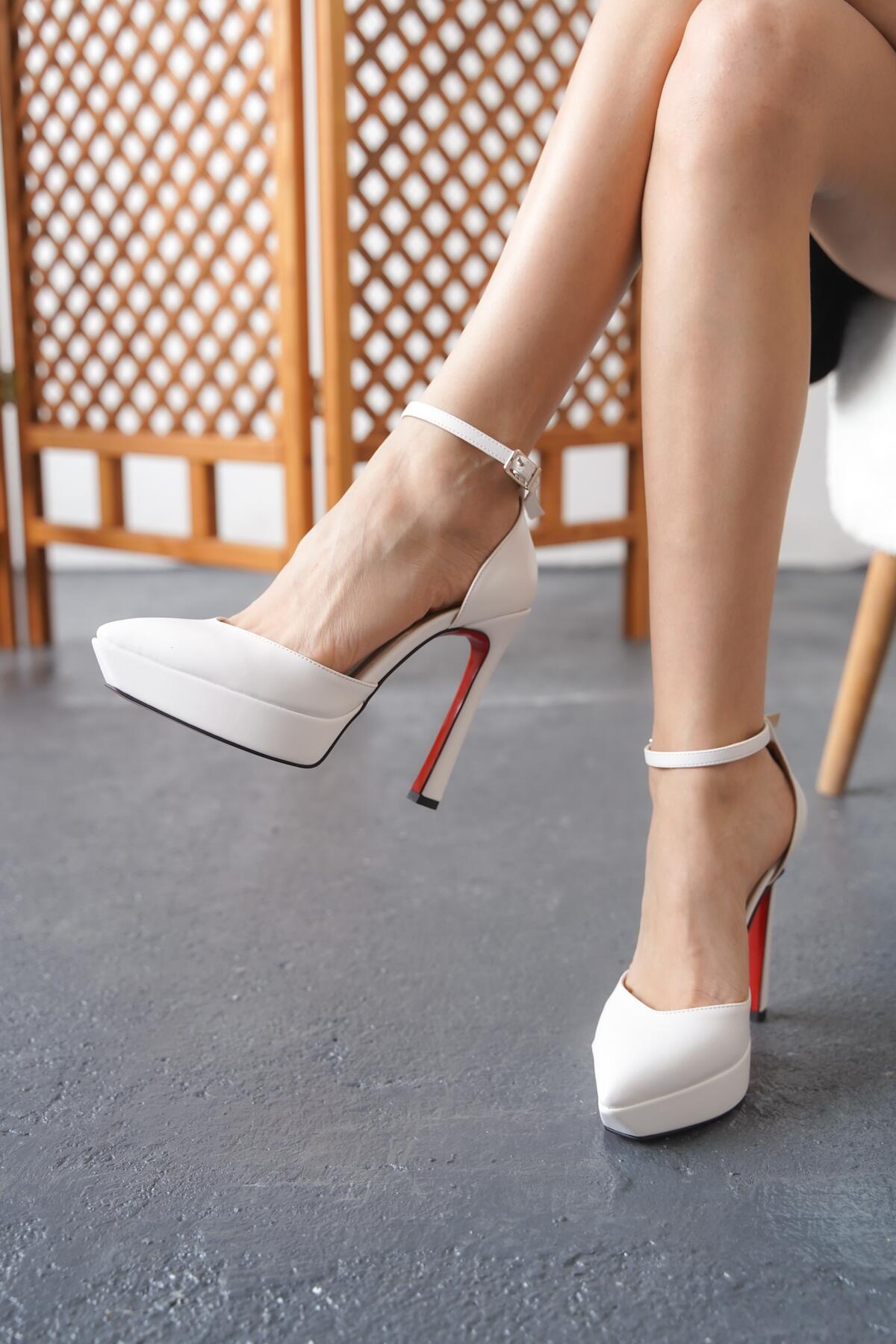 Kadın Baretli Platform Topuklu Ayakkabı Accies Beyaz Cilt