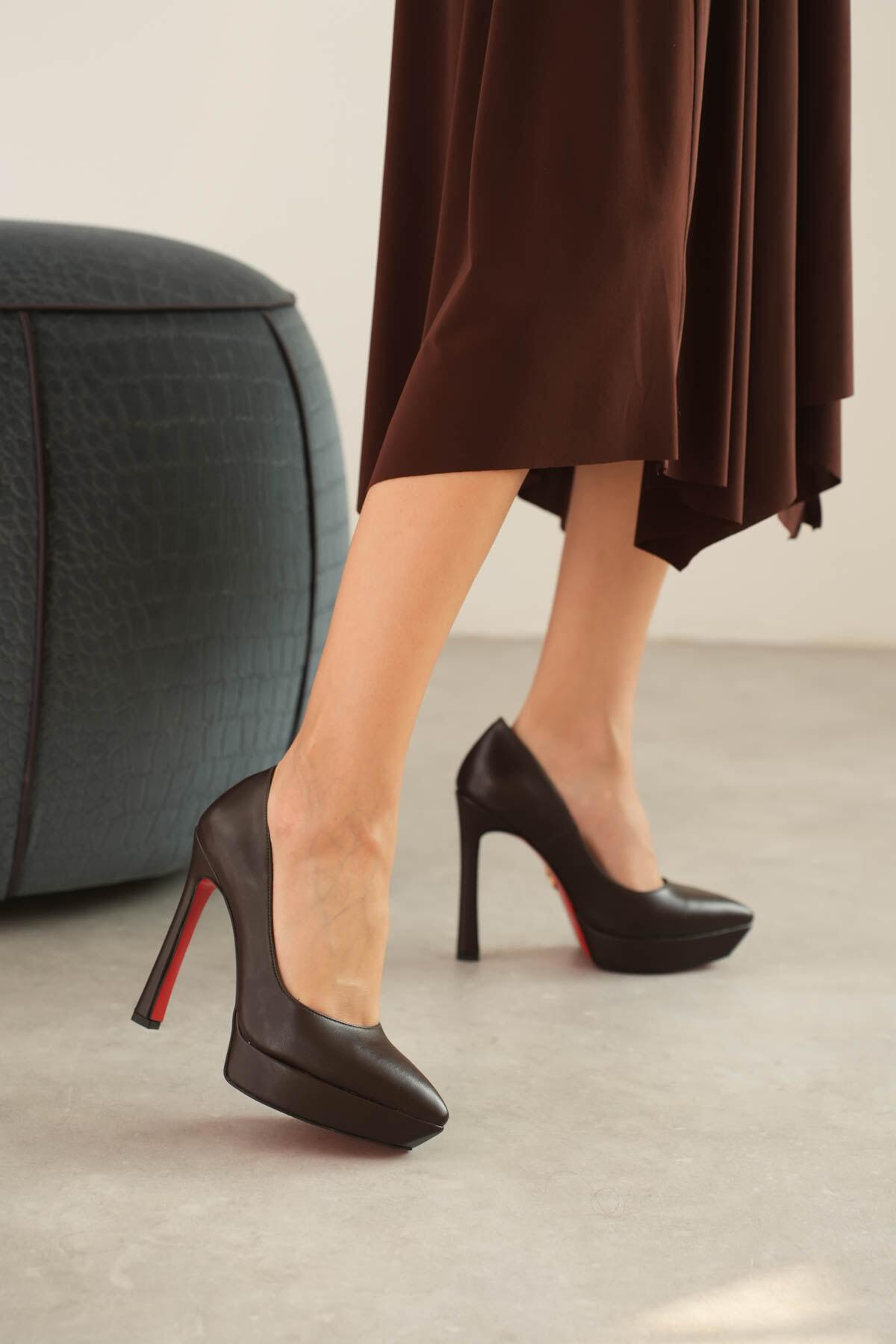 Kadın Baretli Platform Topuklu Ayakkabı Accies Kahverengi