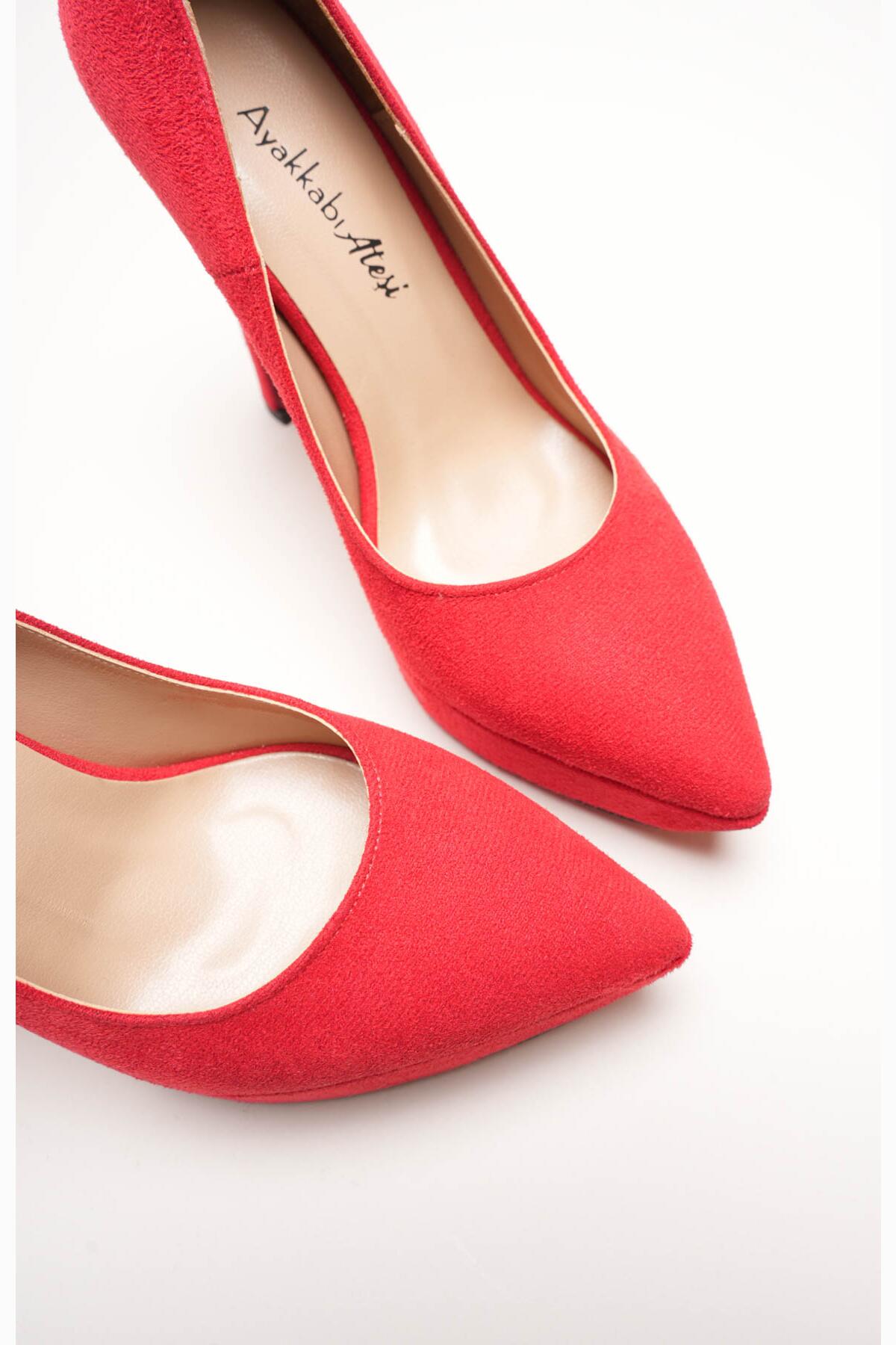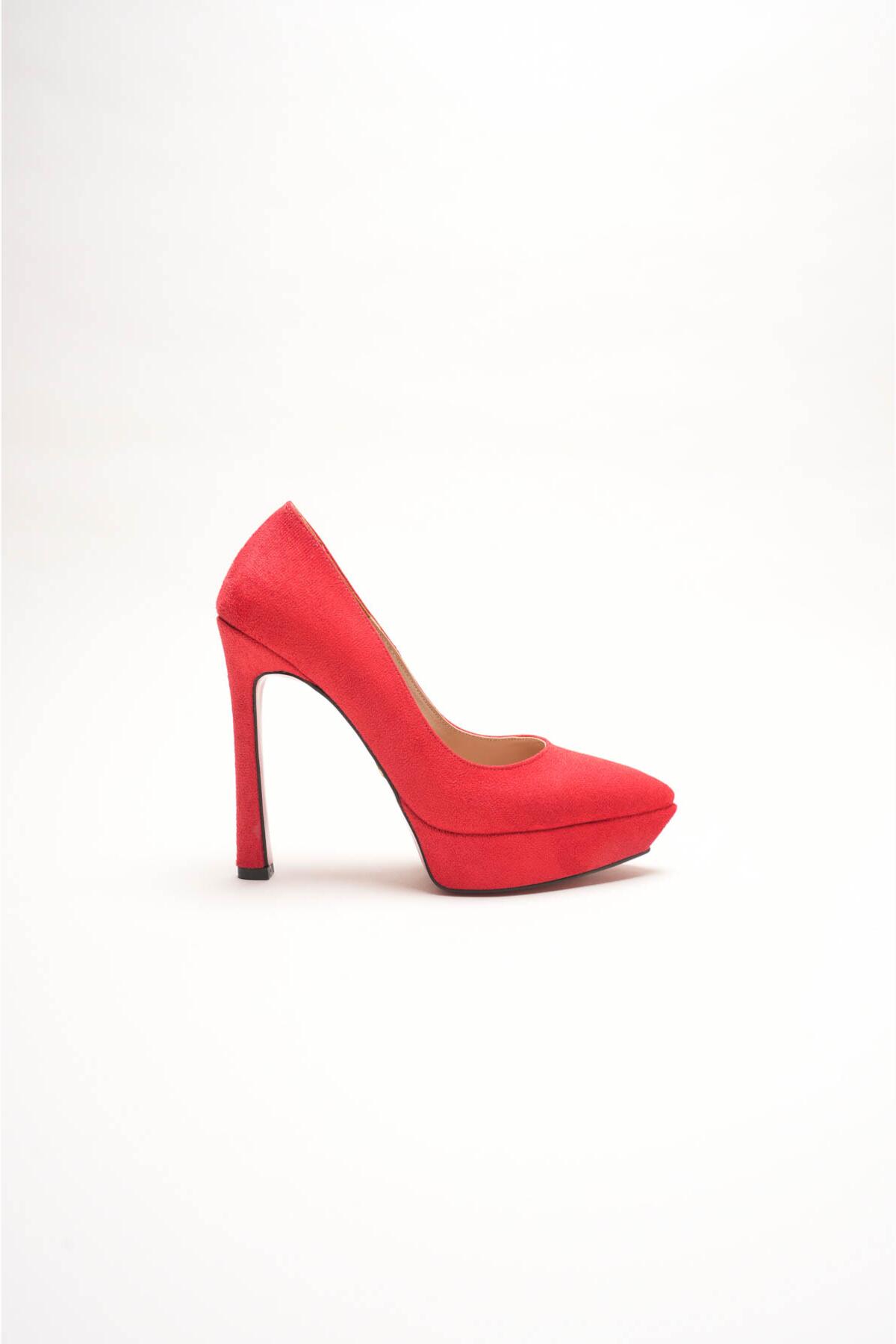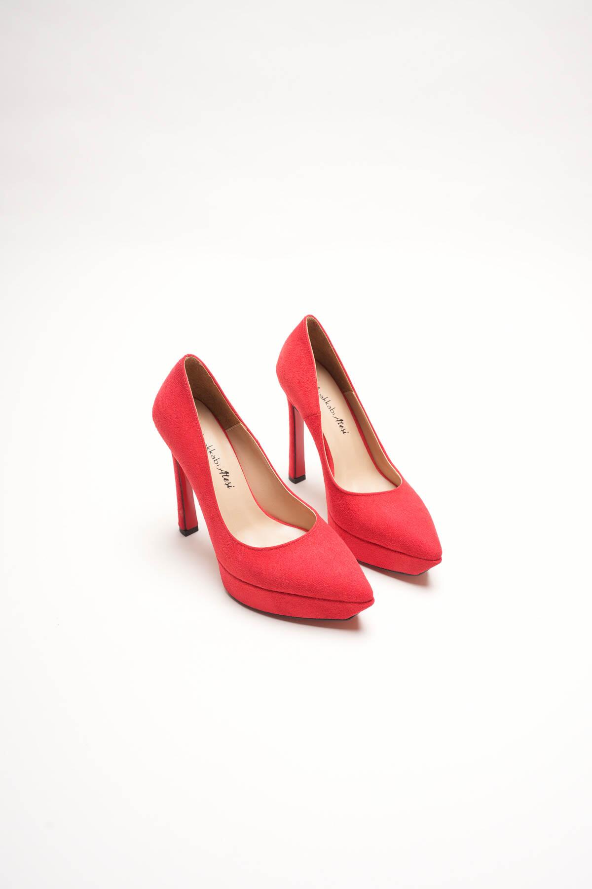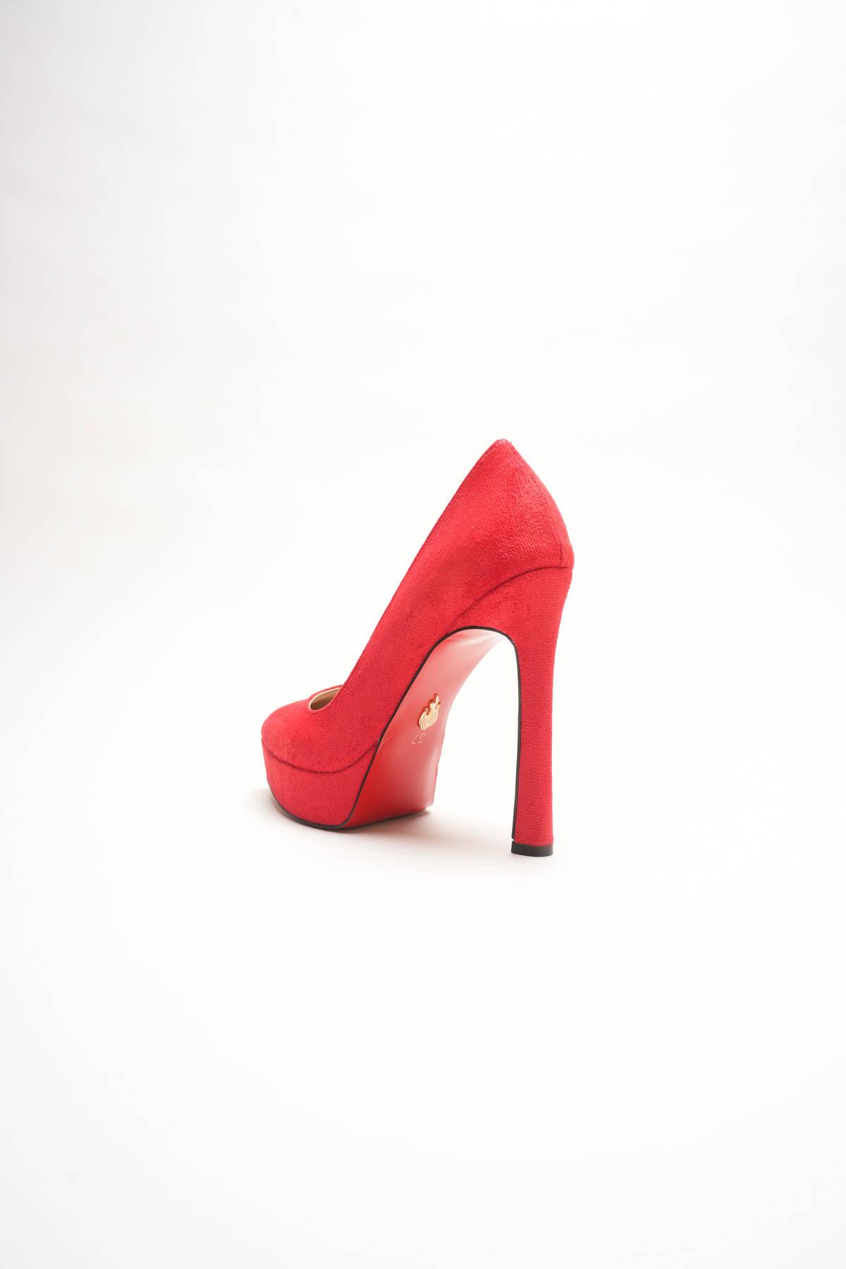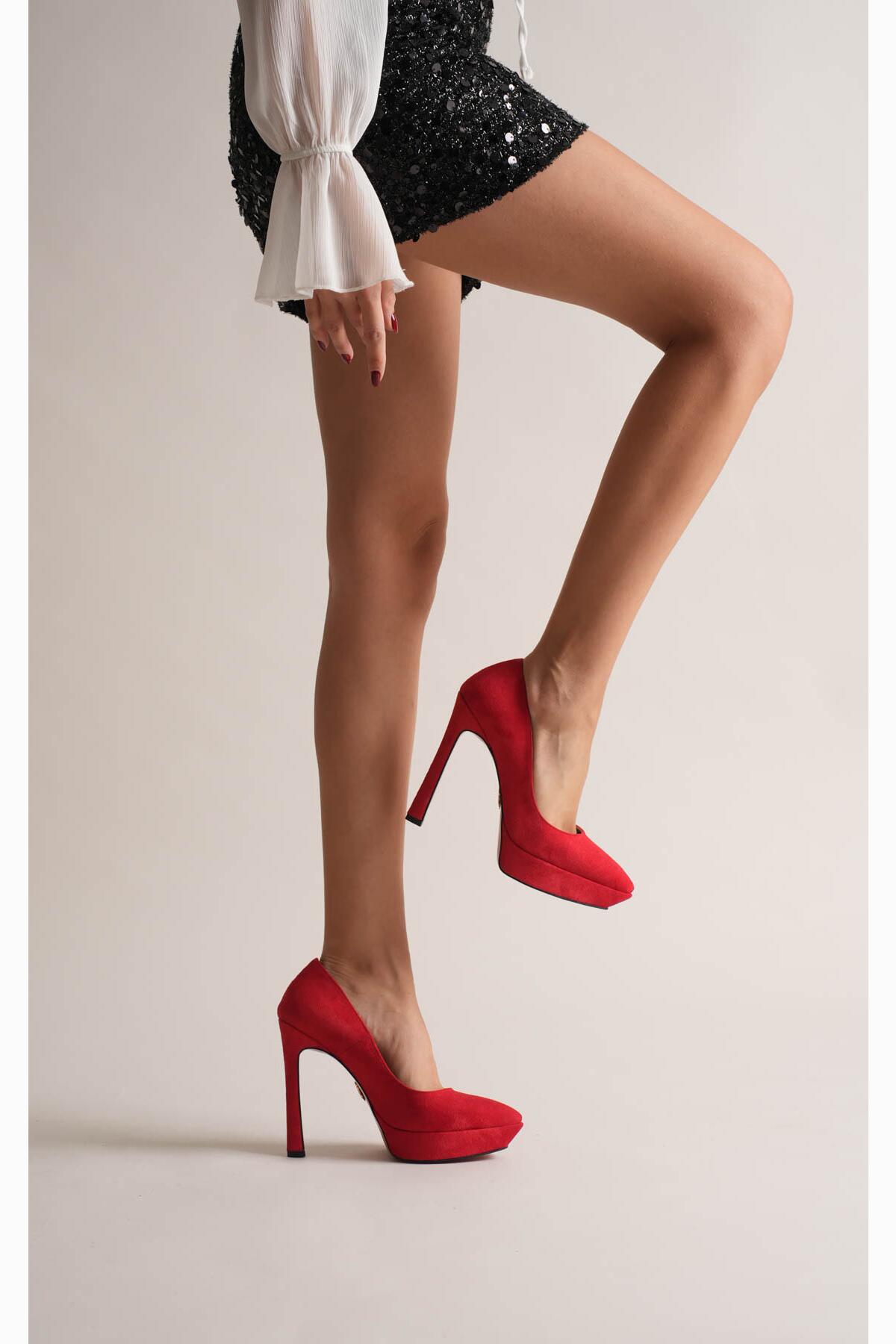 Kadın Baretli Platform Topuklu Ayakkabı Accies Kırmızı Süet