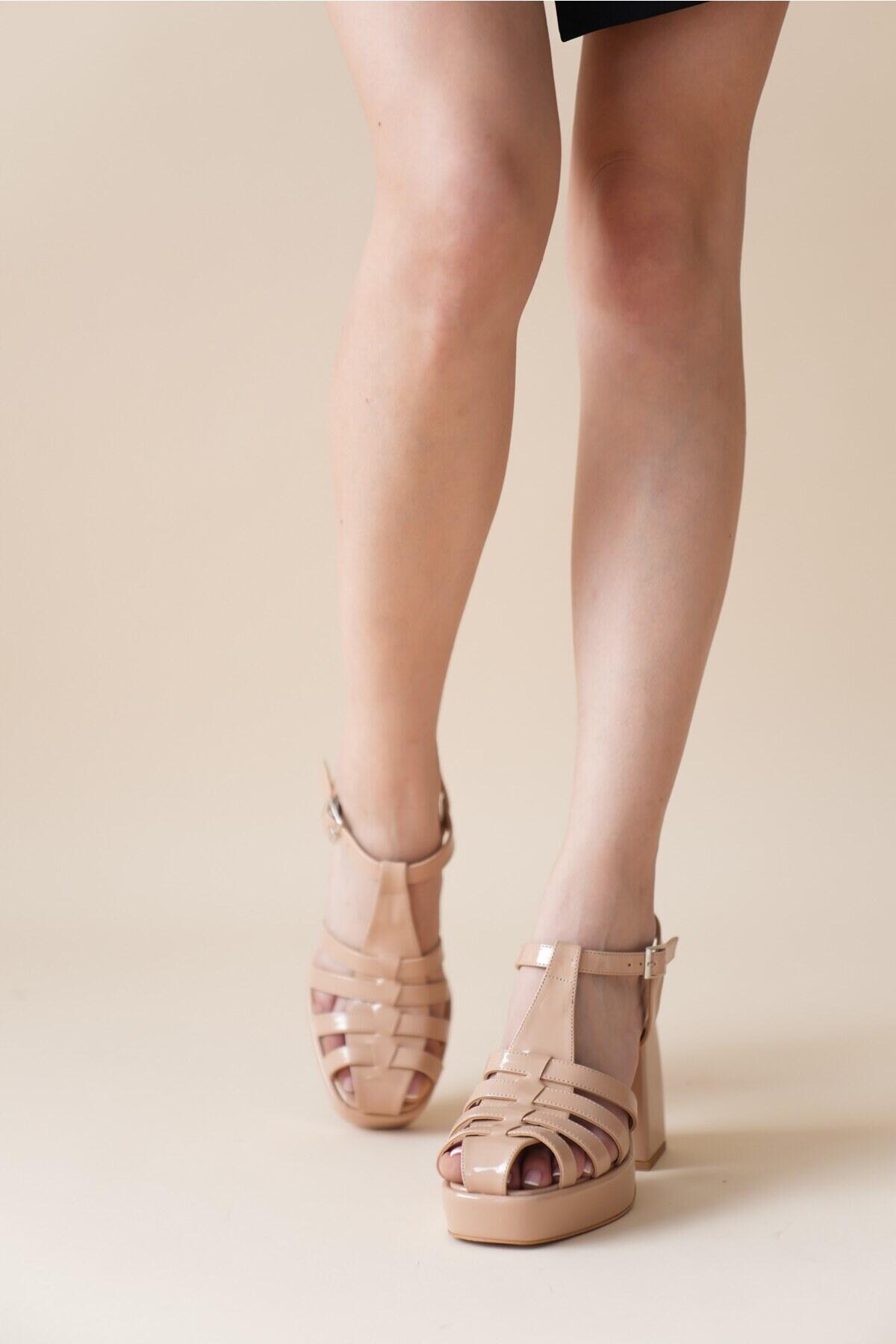Kadın Gladyatör Kalın Topuklu Ayakkabı Hira Nude Rugan