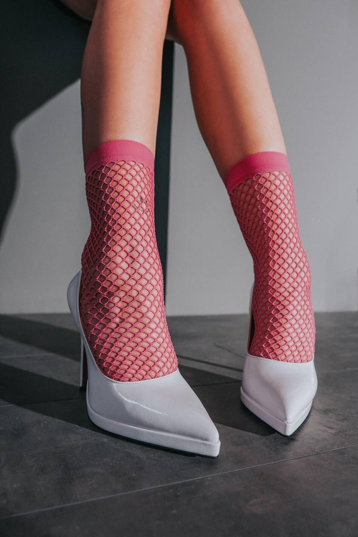 Kadın İnce Topuklu Platform Terlik Nicola Beyaz Rugan