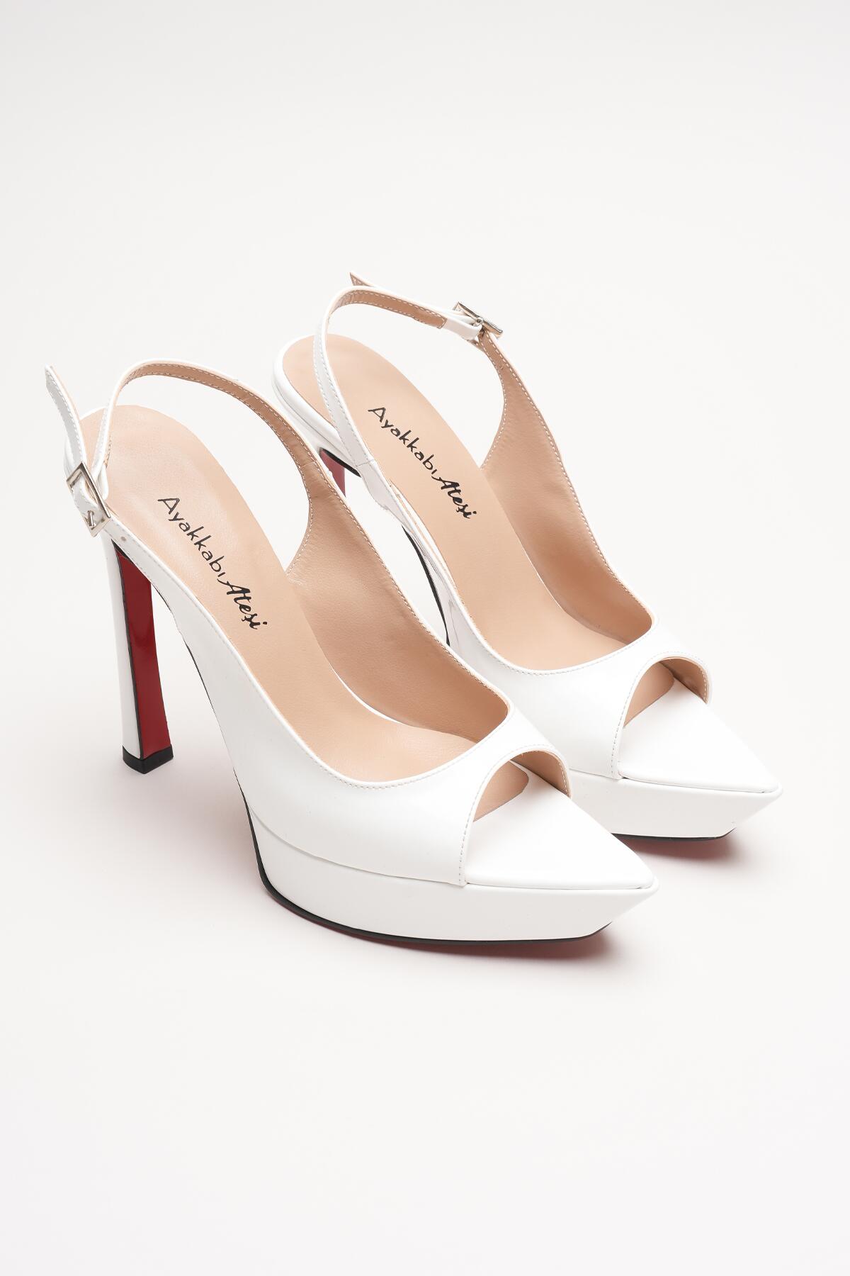 Kadın İnce Topuklu Platform Terlik Sisie Beyaz Rugan