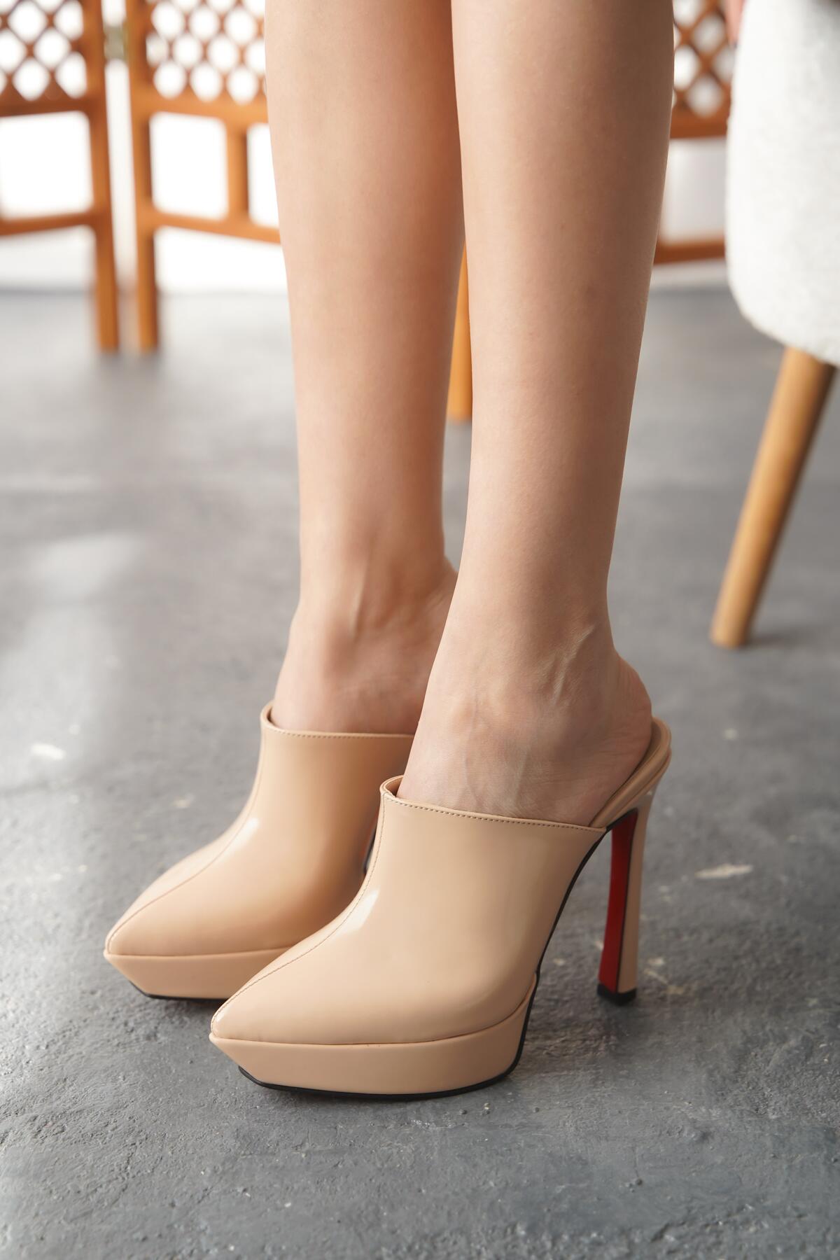 Kadın İnce Topuklu Platform Terlik Sisie Nude Rugan