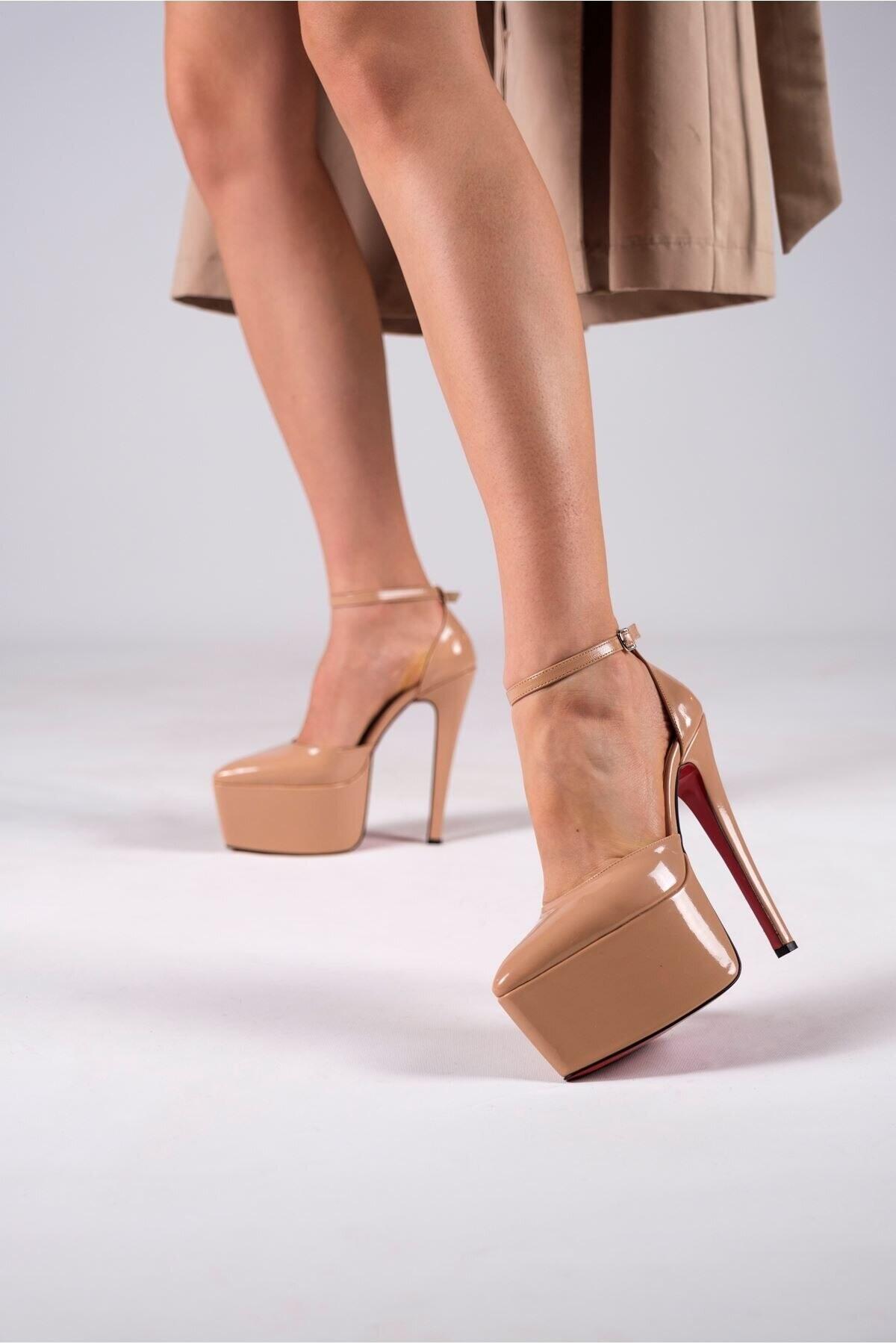 Kadın Özel Tasarım Orta Topuklu Topuklu Ayakkabı Drew Nude Rugan