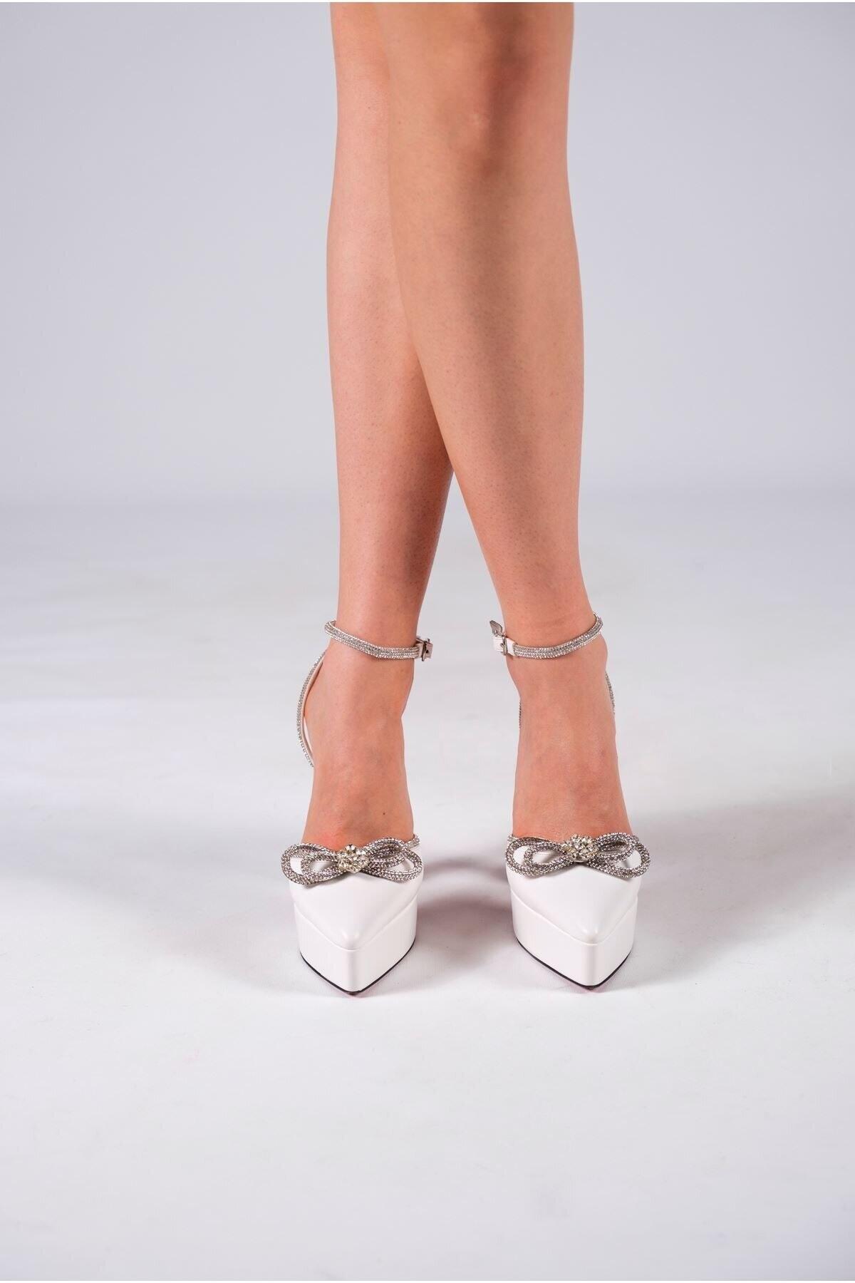 Kadın Özel Tasarım Orta Topuklu Topuklu Ayakkabı Fallon Beyaz Cilt
