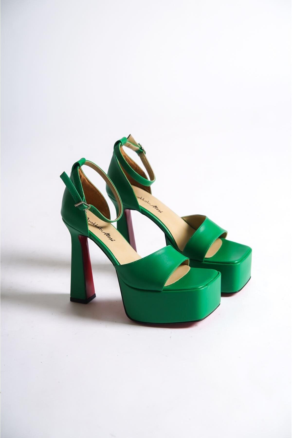 Kadın Özel Tasarım Tasarım Ökçeli Platform Ayakkabı Zoey Yeşil