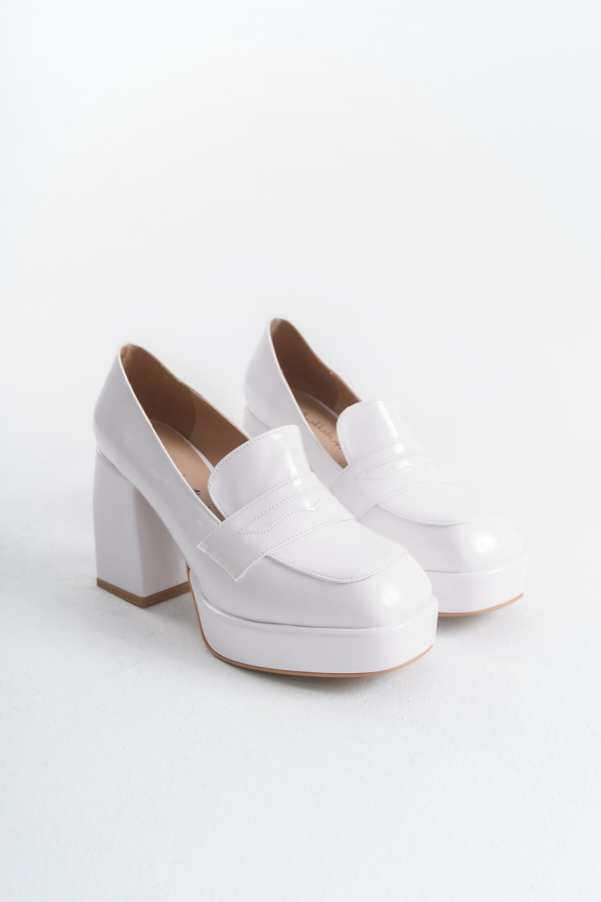 Kadın Platform Kalın Topuklu Loafer Harrie Beyaz Rugan