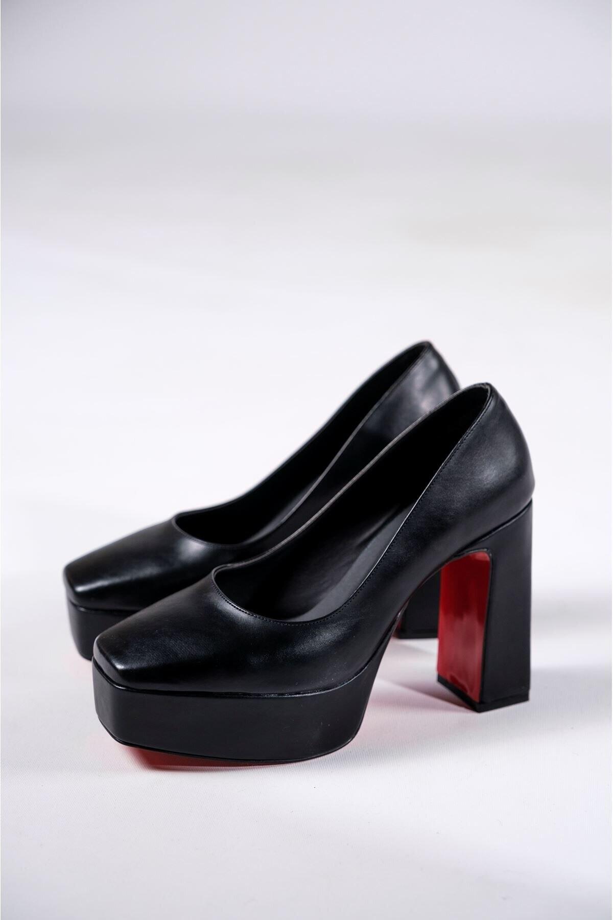 Kadın Platform Tasarım Toka Detaylı Orta Topuklu Ayakkabı Chelsea Siyah Cilt