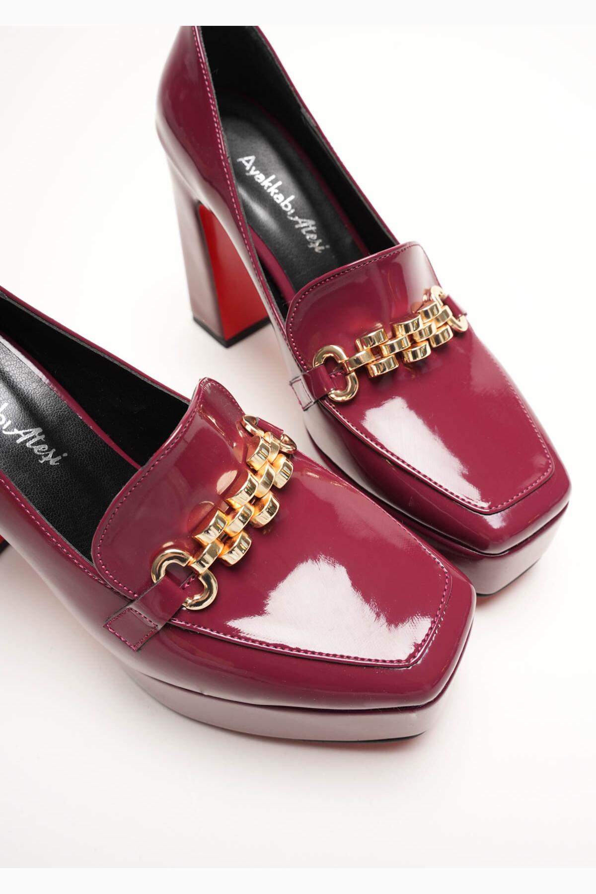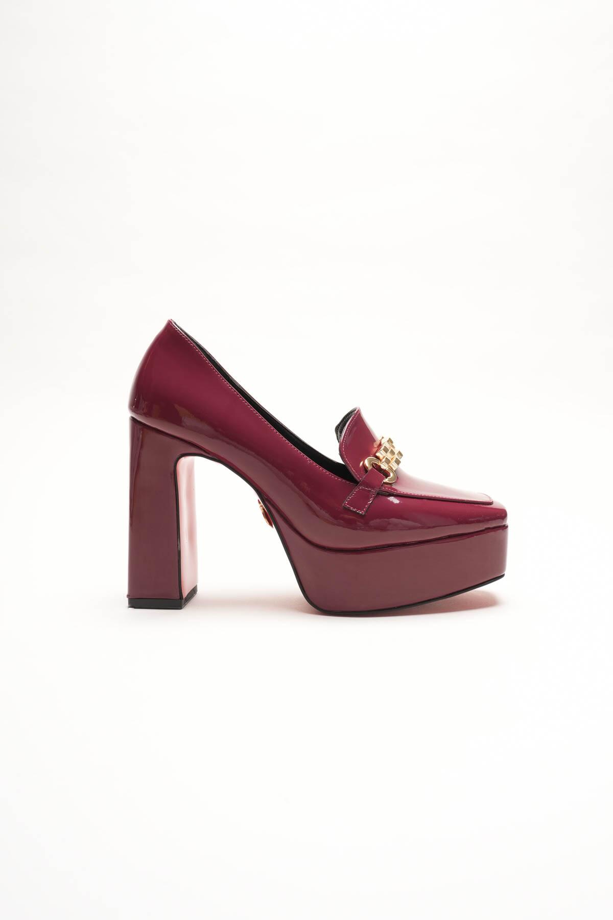 Kadın Platform Tasarım Toka Detaylı Orta Topuklu Ayakkabı Vanera Bordo