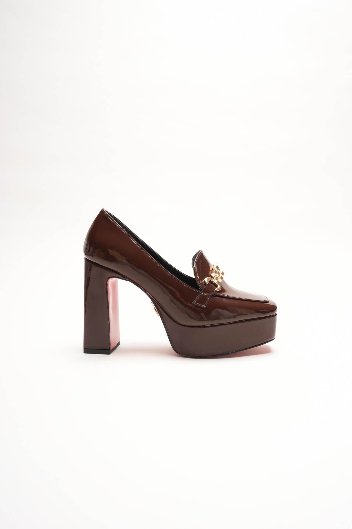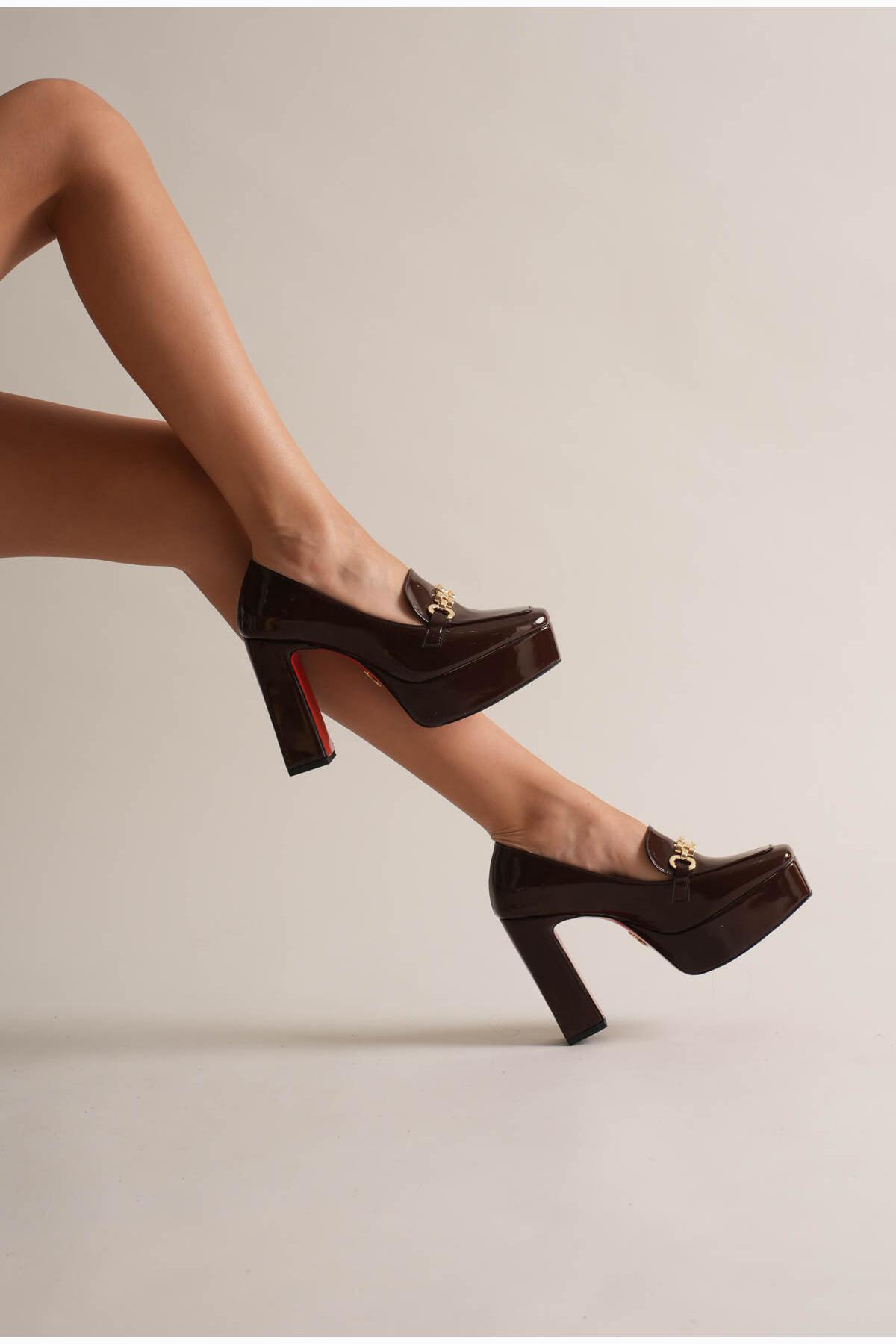 Kadın Platform Tasarım Toka Detaylı Orta Topuklu Ayakkabı Vanera Kahverengi